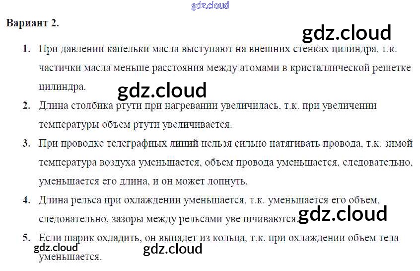 Ответ на задание Вар. 2 Контрольные и самостоятельные работы Физика за 7 (седьмой) класс Громцева УМК 2020