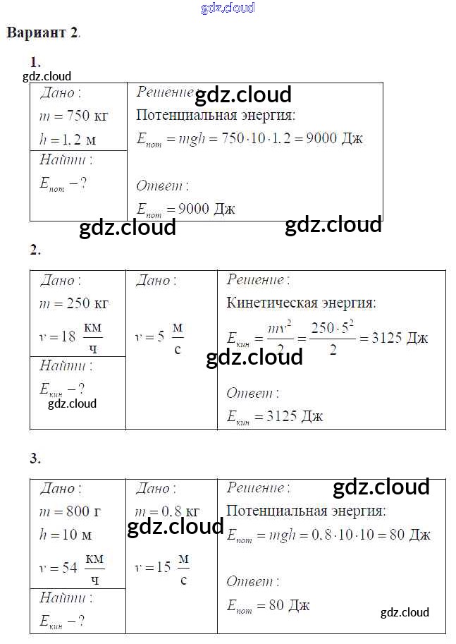 самостоятельная работа / ср №50. виды механической энергии / вар. 2