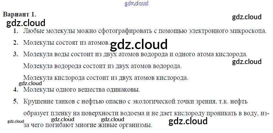 СР №6. Молекулы Ответы к самостоятельным работам по Физике 7 класс Контрольные и самостоятельные работы Громцева УМК Экзамен