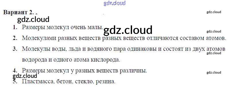 СР №6. Молекулы Ответы к самостоятельным работам по Физике 7 класс Контрольные и самостоятельные работы Громцева УМК Экзамен