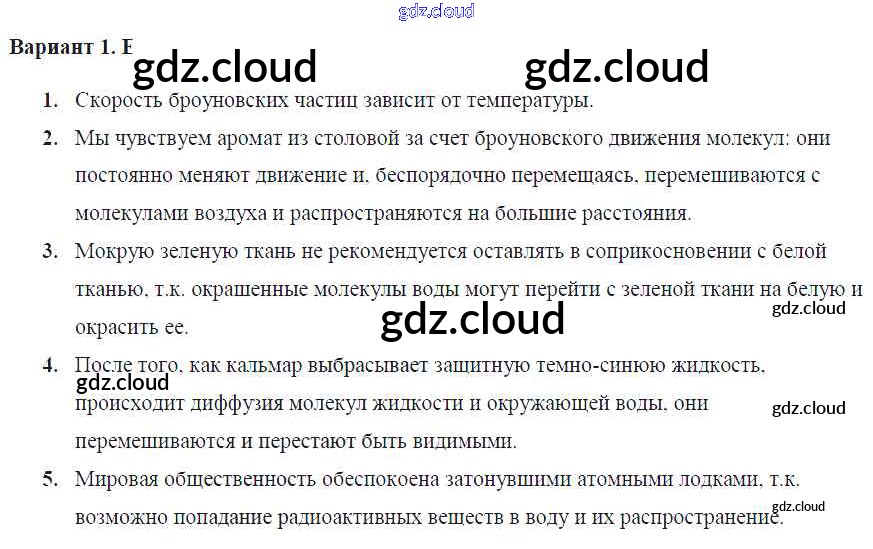 СР №7. Броуновское движение. Диффузия в газах, жидкостях и твердых телах Ответы к самостоятельным работам по Физике 7 класс Контрольные и самостоятельные работы Громцева УМК Экзамен