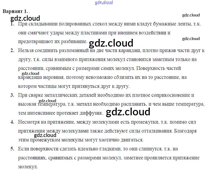 СР №8. Взаимное притяжение и отталкивание молекул Ответы к самостоятельным работам по Физике 7 класс Контрольные и самостоятельные работы Громцева УМК Экзамен