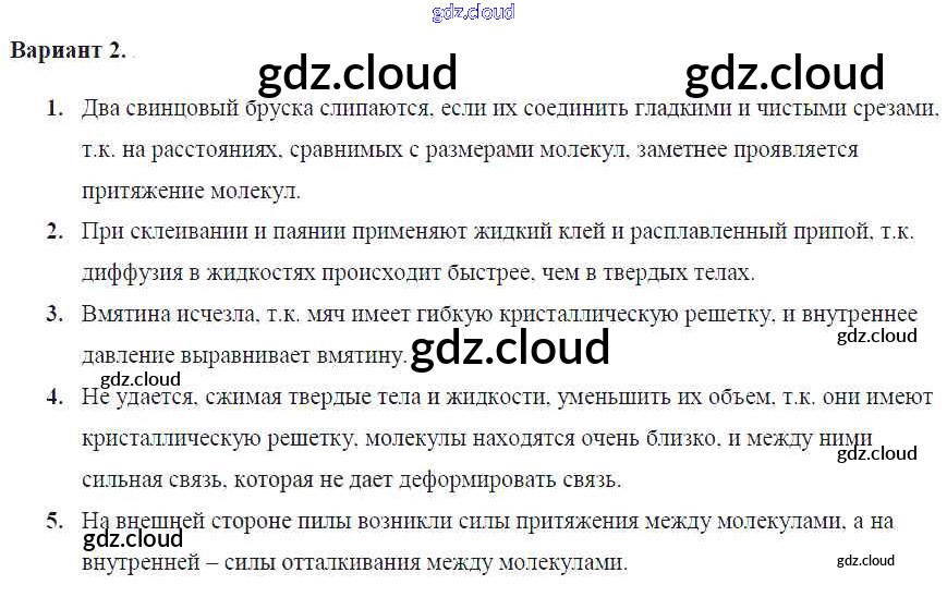 СР №8. Взаимное притяжение и отталкивание молекул Ответы к самостоятельным работам по Физике 7 класс Контрольные и самостоятельные работы Громцева УМК Экзамен