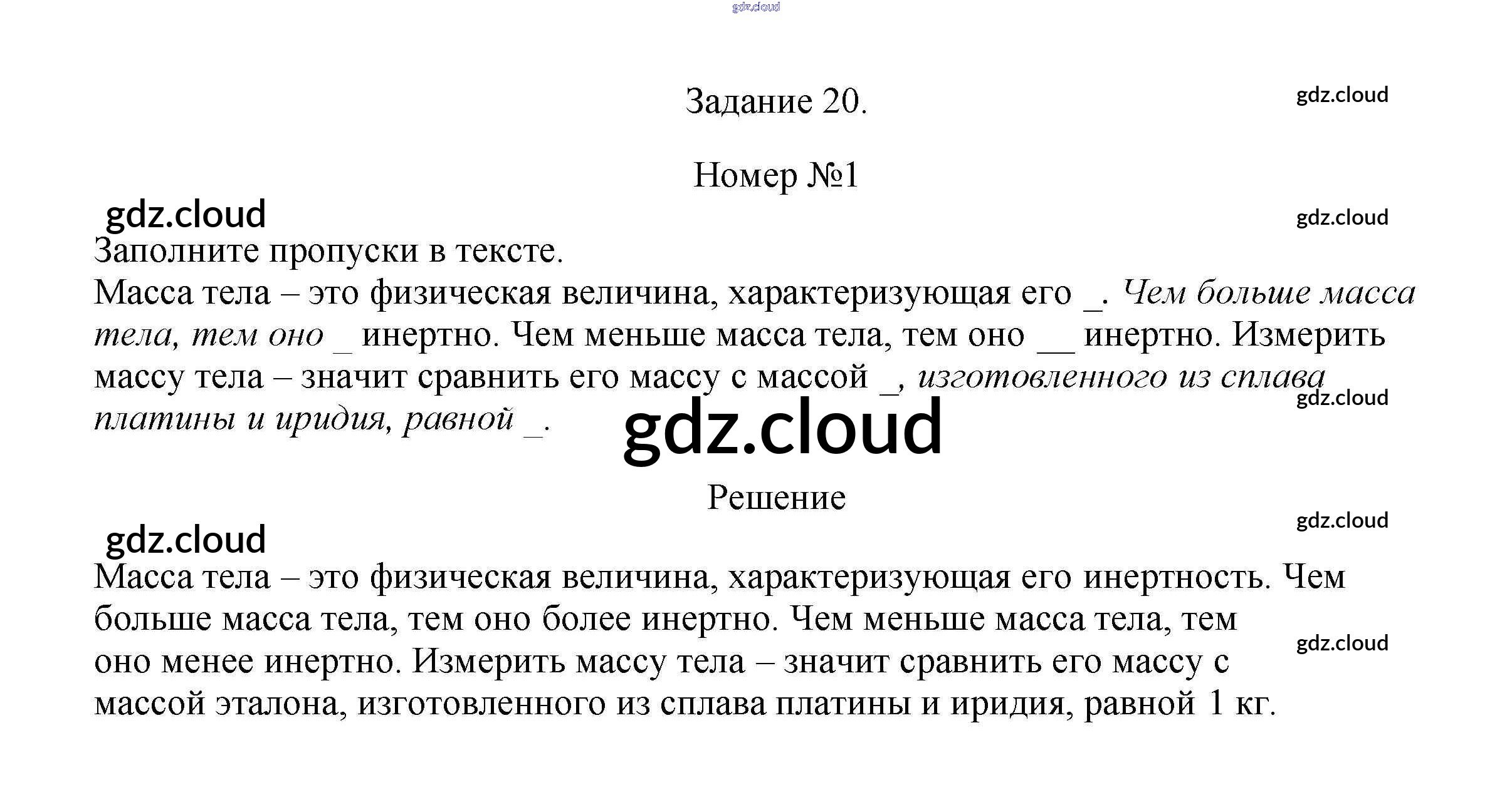 Ответы к заданию 20 по Физике 7 класс Рабочая тетрадь Ханнанова Вертикаль Дрофа