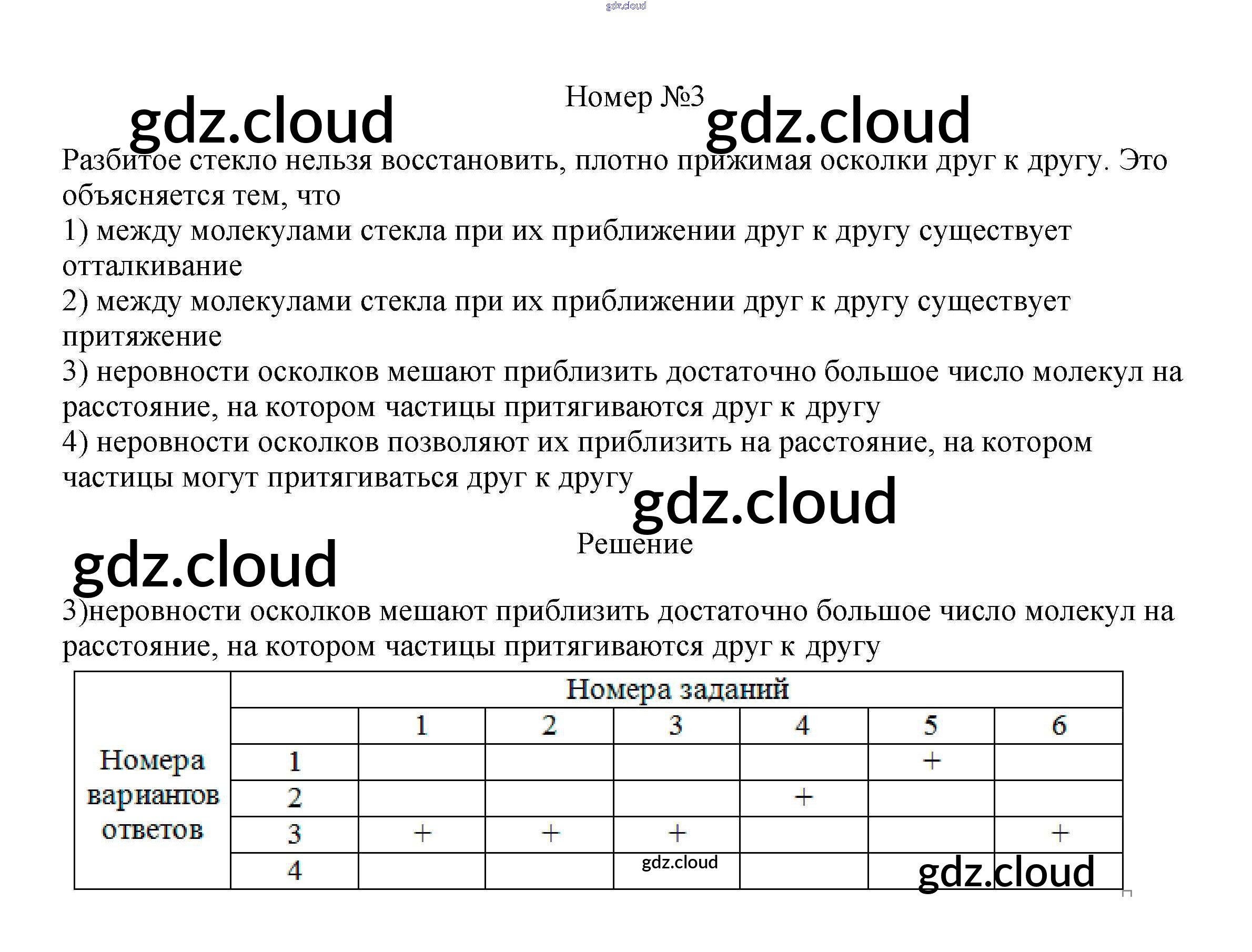 Тренировочный тест 1 "Строение вещества" Ответы к тестам по Физике 7 класс Рабочая тетрадь Ханнанова Вертикаль Дрофа