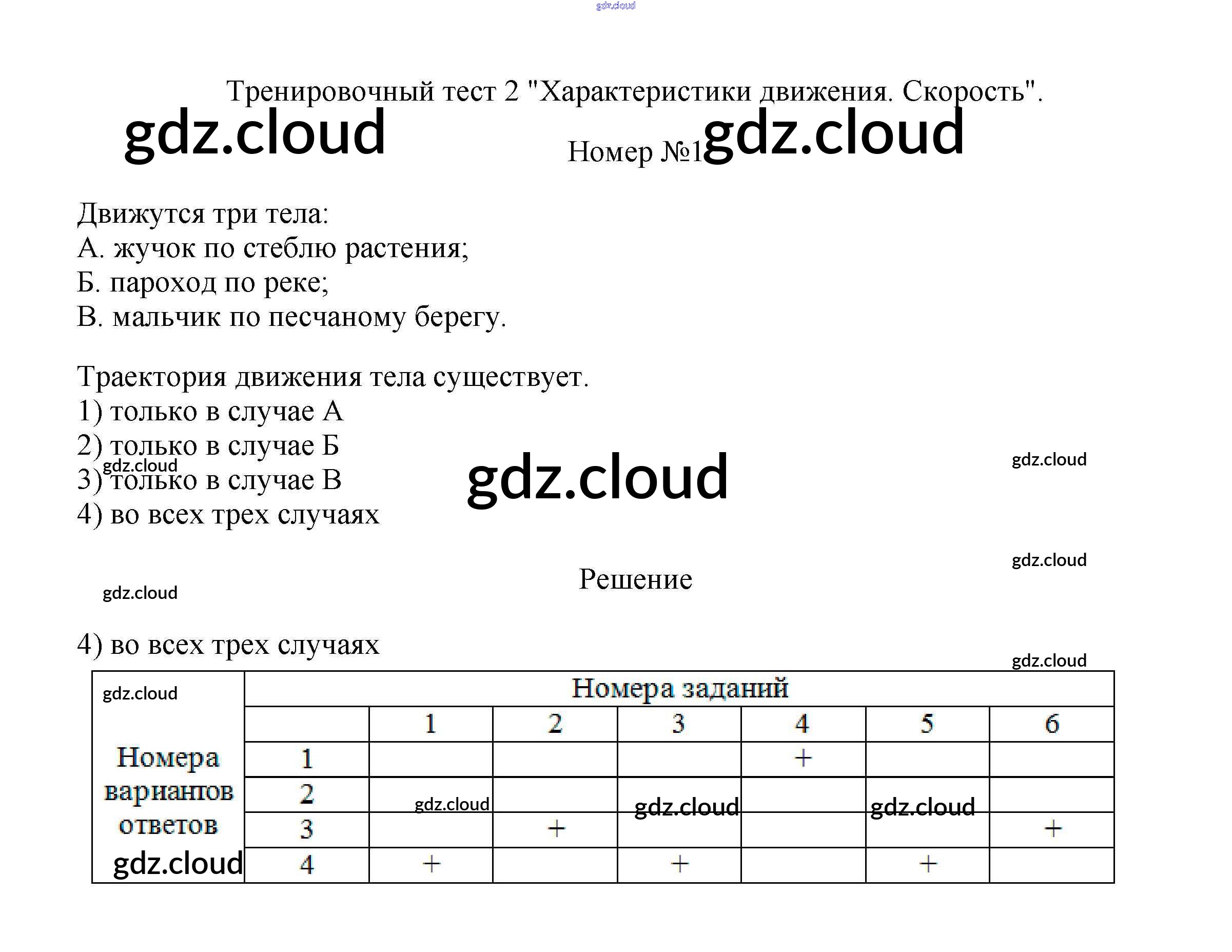 Тренировочный тест 2 "Характеристики движения. Скорость" Ответы к тестам по Физике 7 класс Рабочая тетрадь Ханнанова Вертикаль Дрофа