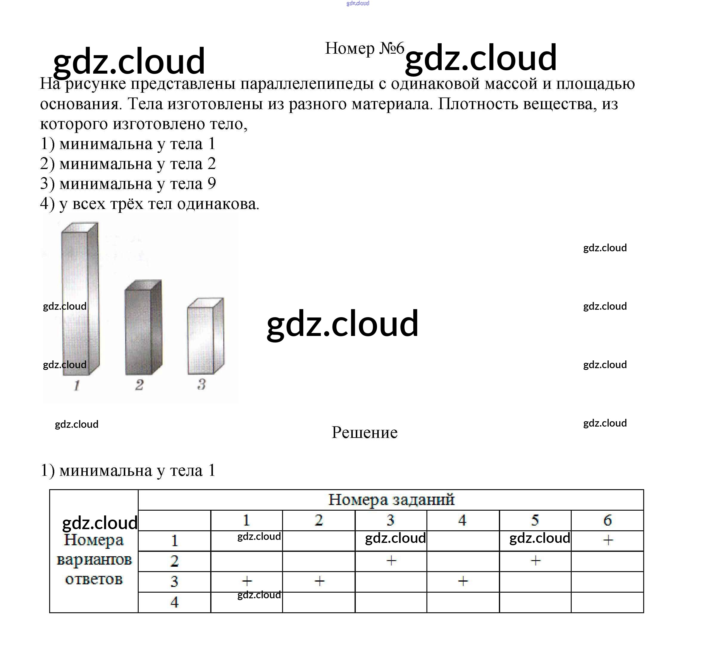 Тренировочный тест 3 "Масса и плотность" Ответы к тестам по Физике 7 класс Рабочая тетрадь Ханнанова Вертикаль Дрофа
