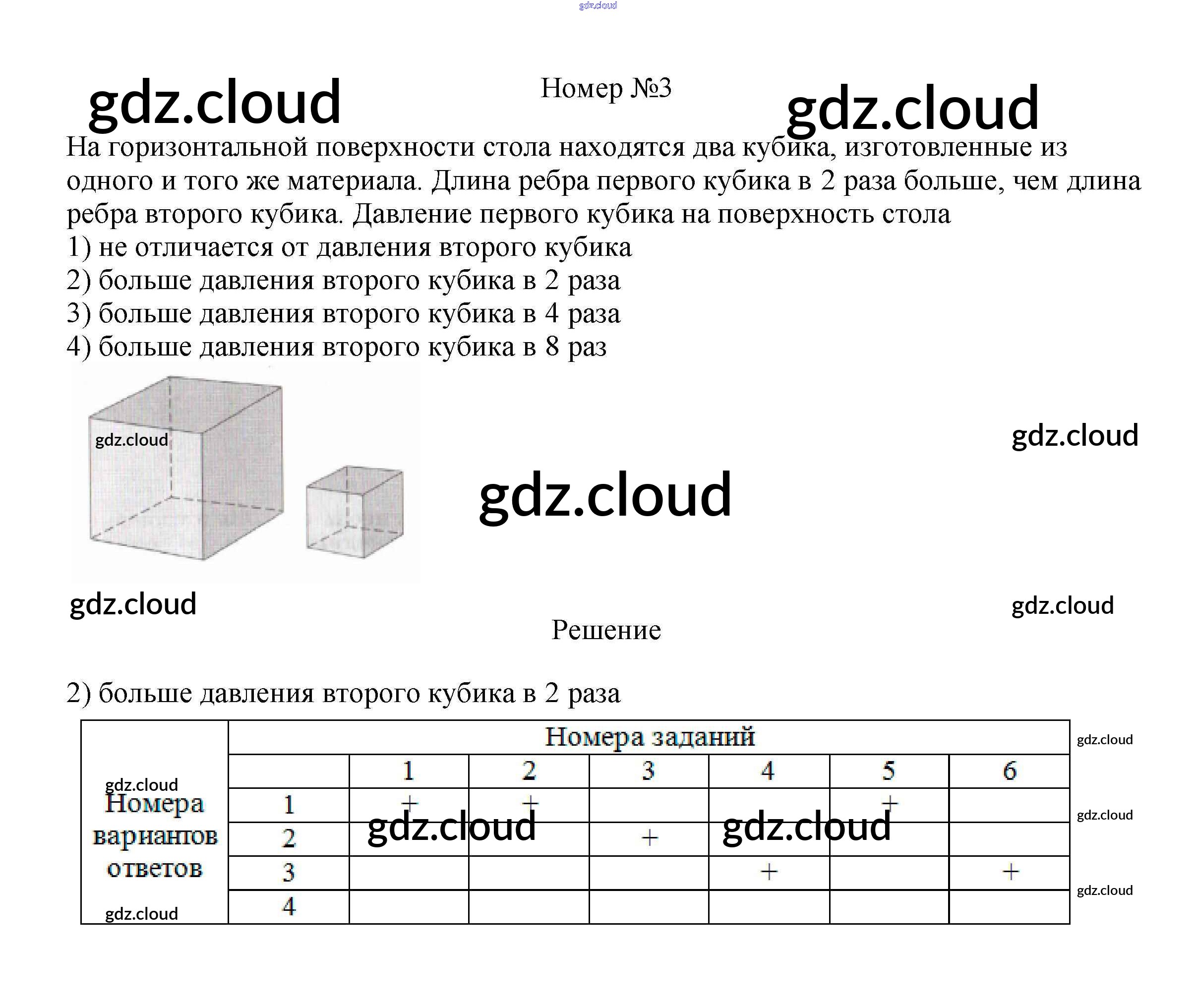 Тренировочный тест 5 "Давление твердого тела" Ответы к тестам по Физике 7 класс Рабочая тетрадь Ханнанова Вертикаль Дрофа