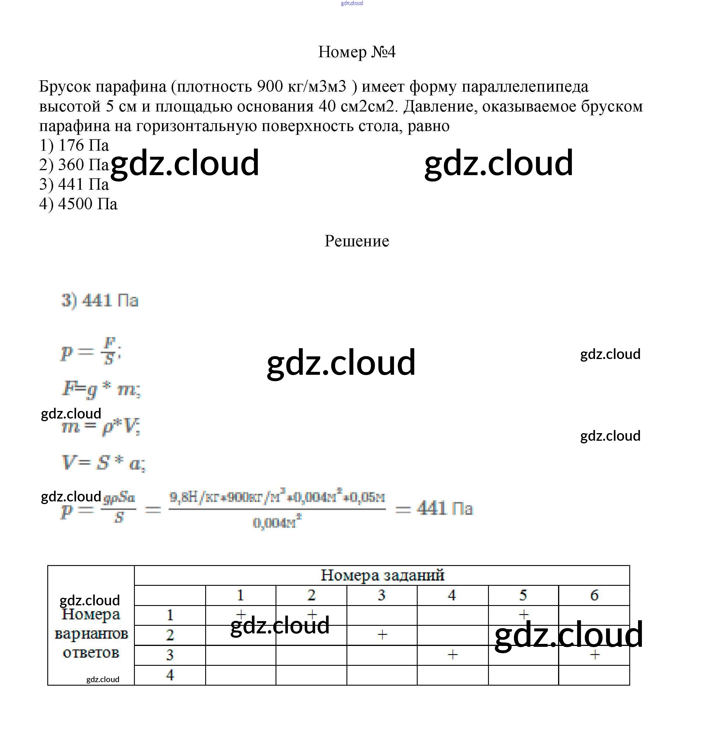 Тренировочный тест 5 "Давление твердого тела" Ответы к тестам по Физике 7 класс Рабочая тетрадь Ханнанова Вертикаль Дрофа