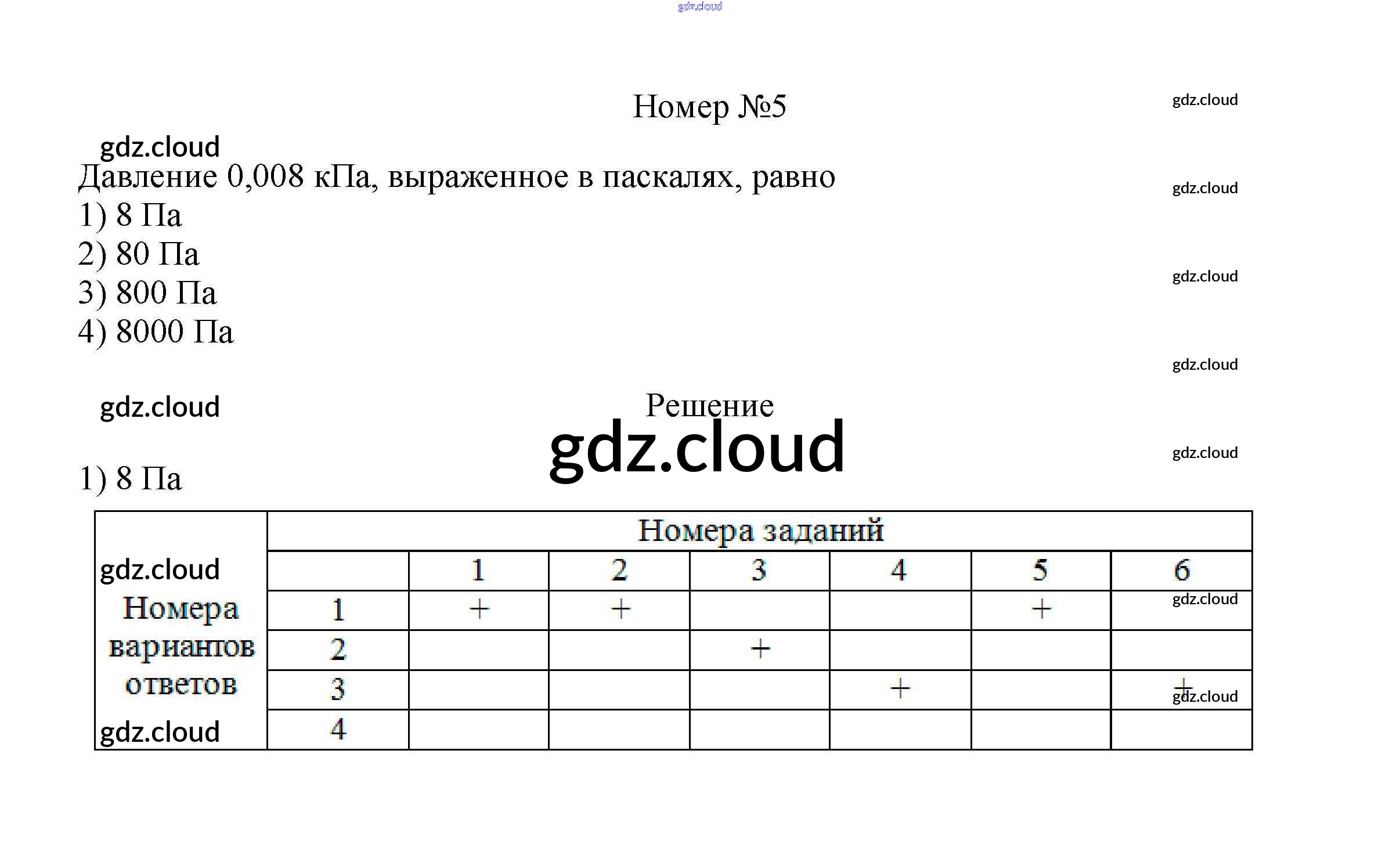 Тренировочный тест 5 "Давление твердого тела" Ответы к тестам по Физике 7 класс Рабочая тетрадь Ханнанова Вертикаль Дрофа