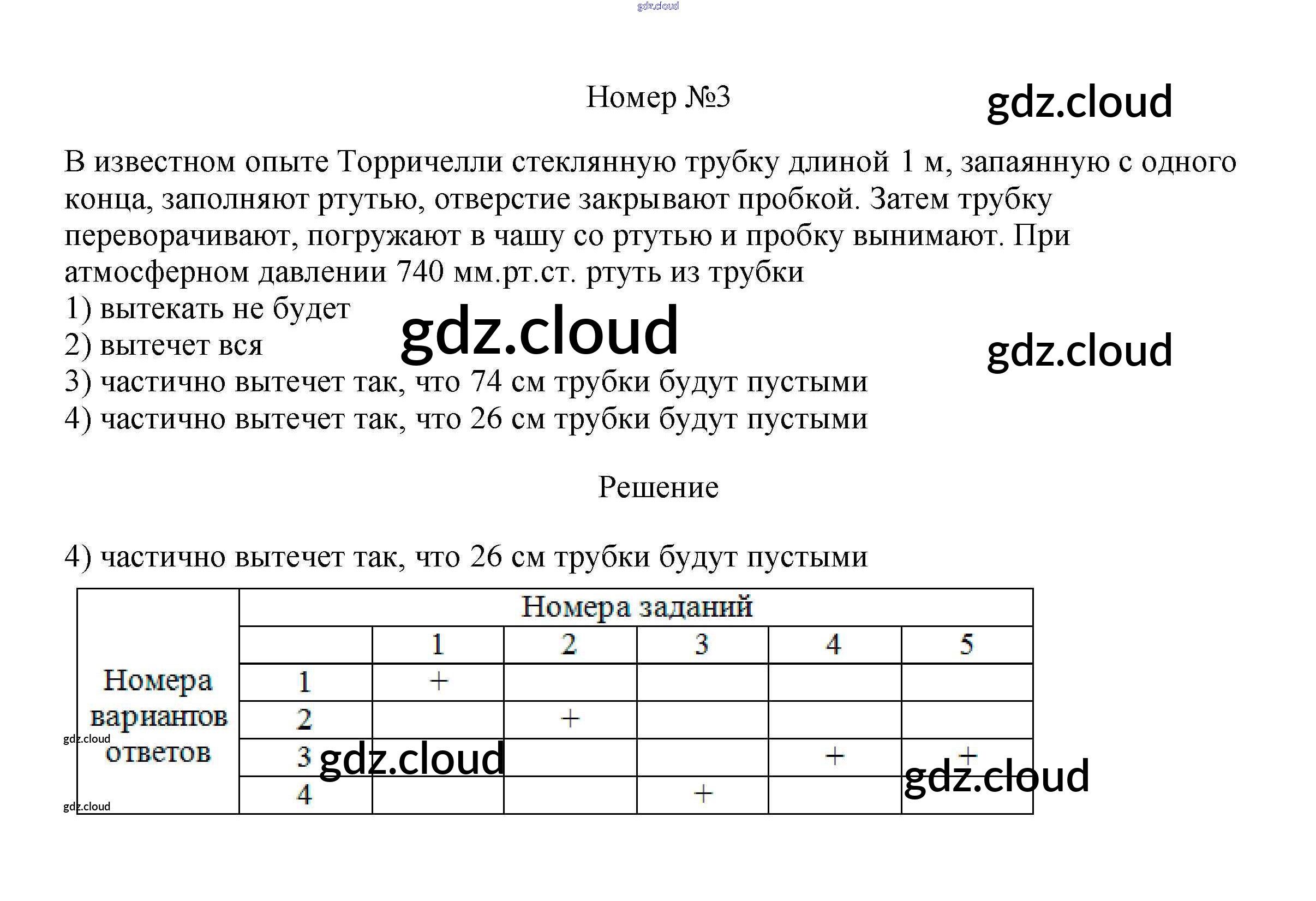 Тренировочный тест 6 "Давление газов и жидкостей" Ответы к тестам по Физике 7 класс Рабочая тетрадь Ханнанова Вертикаль Дрофа