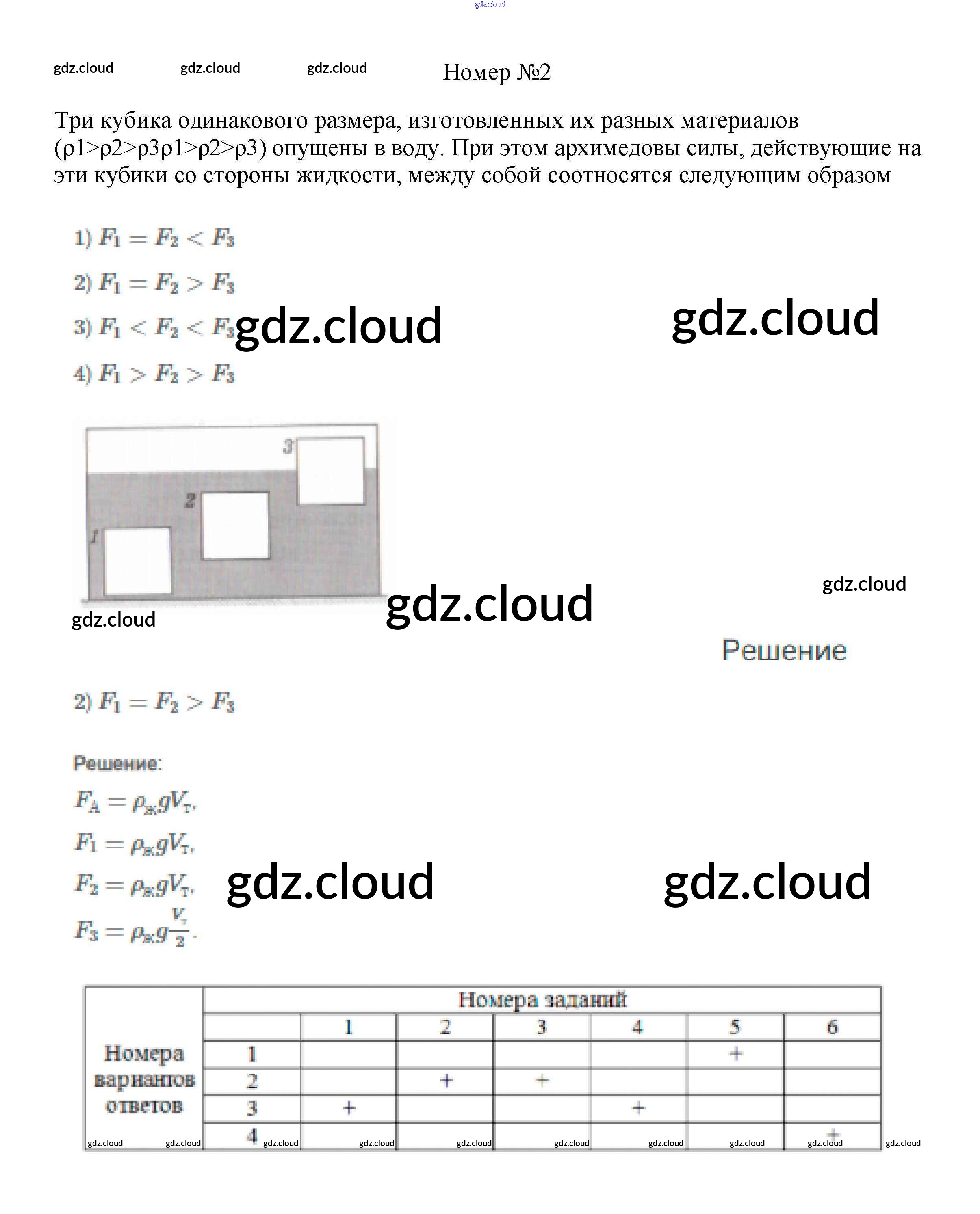 Тренировочный тест 7 "Закон Архимеда" Ответы к тестам по Физике 7 класс Рабочая тетрадь Ханнанова Вертикаль Дрофа