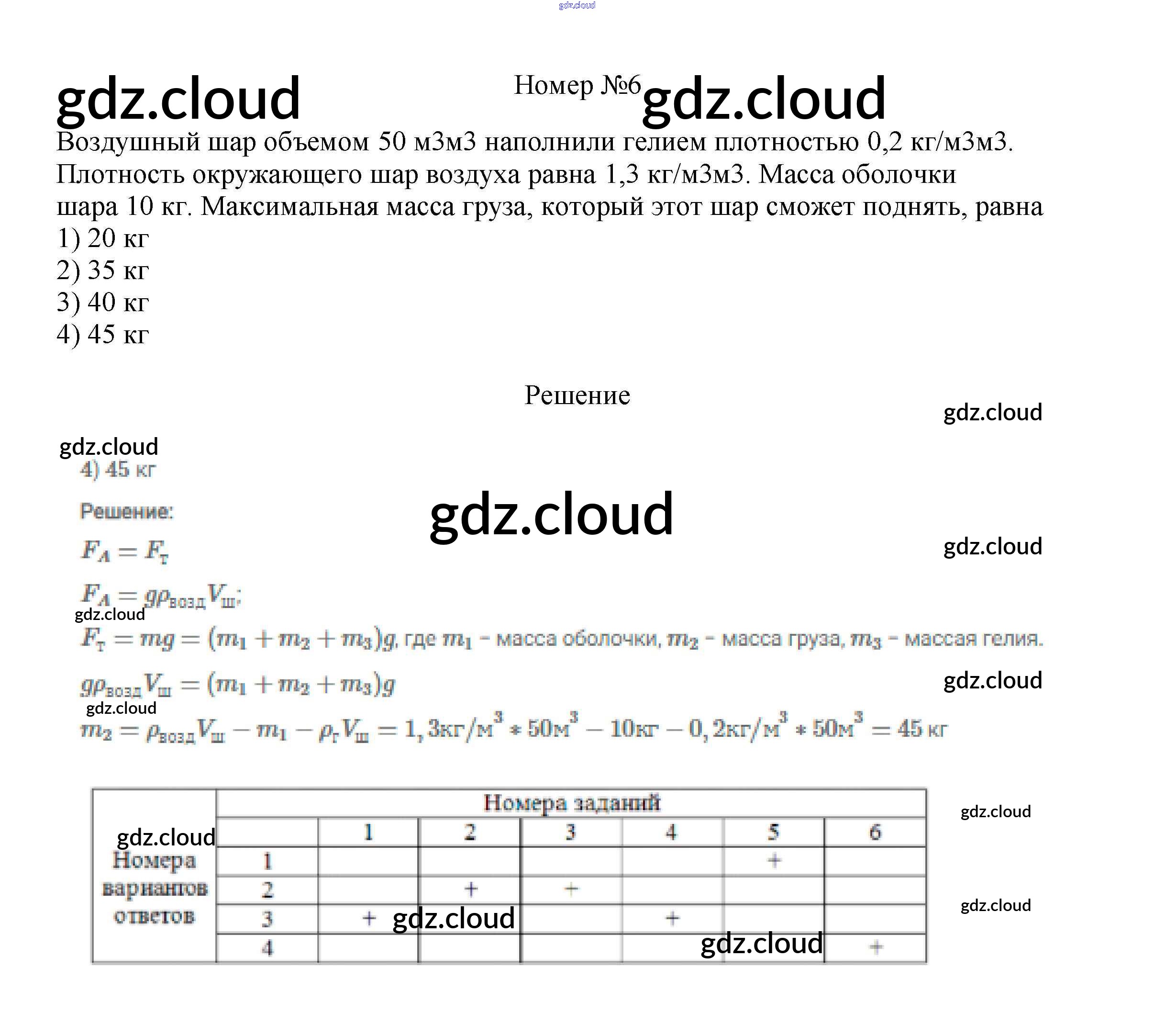 Тренировочный тест 7 "Закон Архимеда" Ответы к тестам по Физике 7 класс Рабочая тетрадь Ханнанова Вертикаль Дрофа