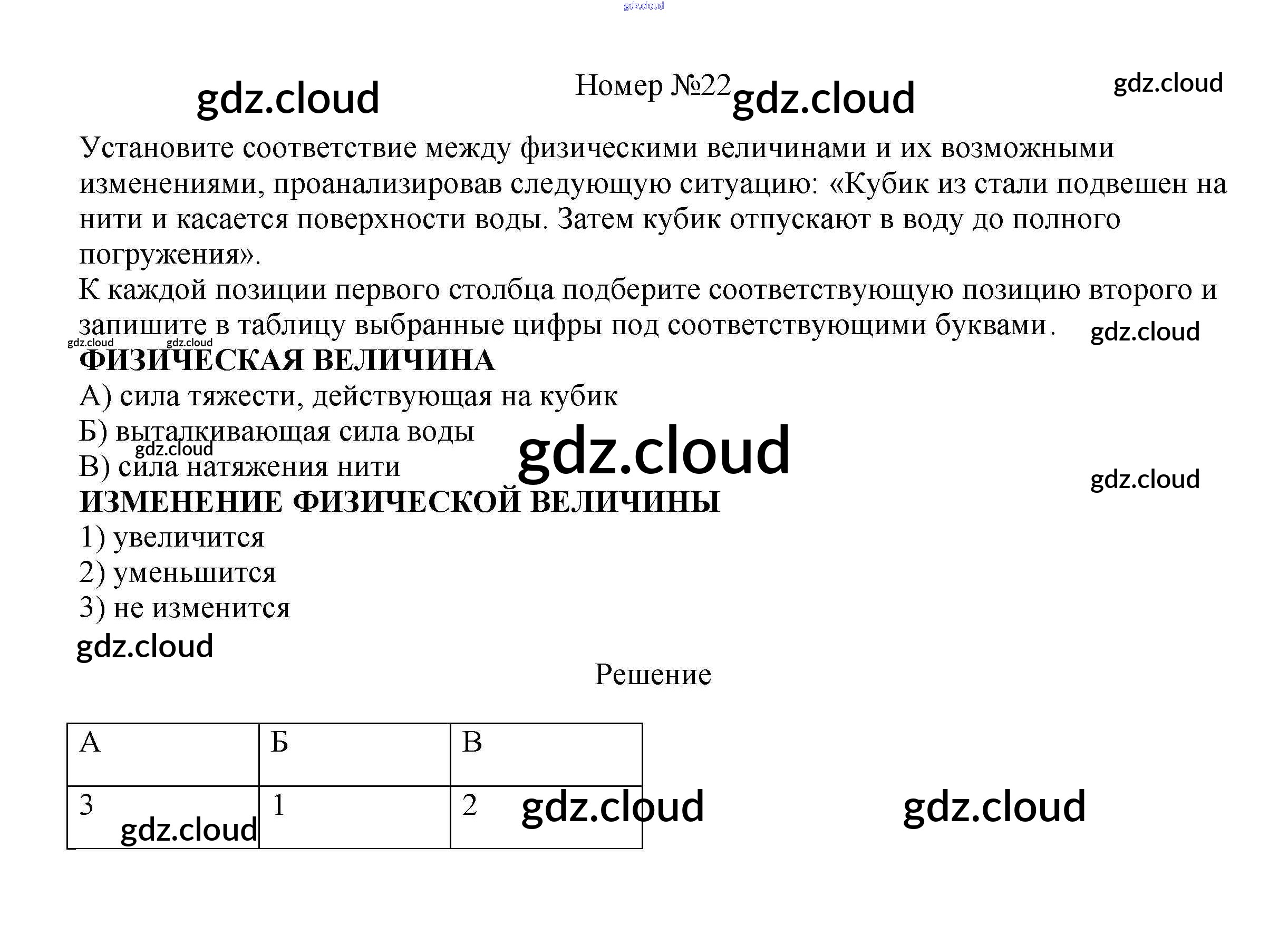 Ответ на задание 22 Рабочая тетрадь Физика за 7 (седьмой) класс Ханнанова, Ханнанов Вертикаль 2016