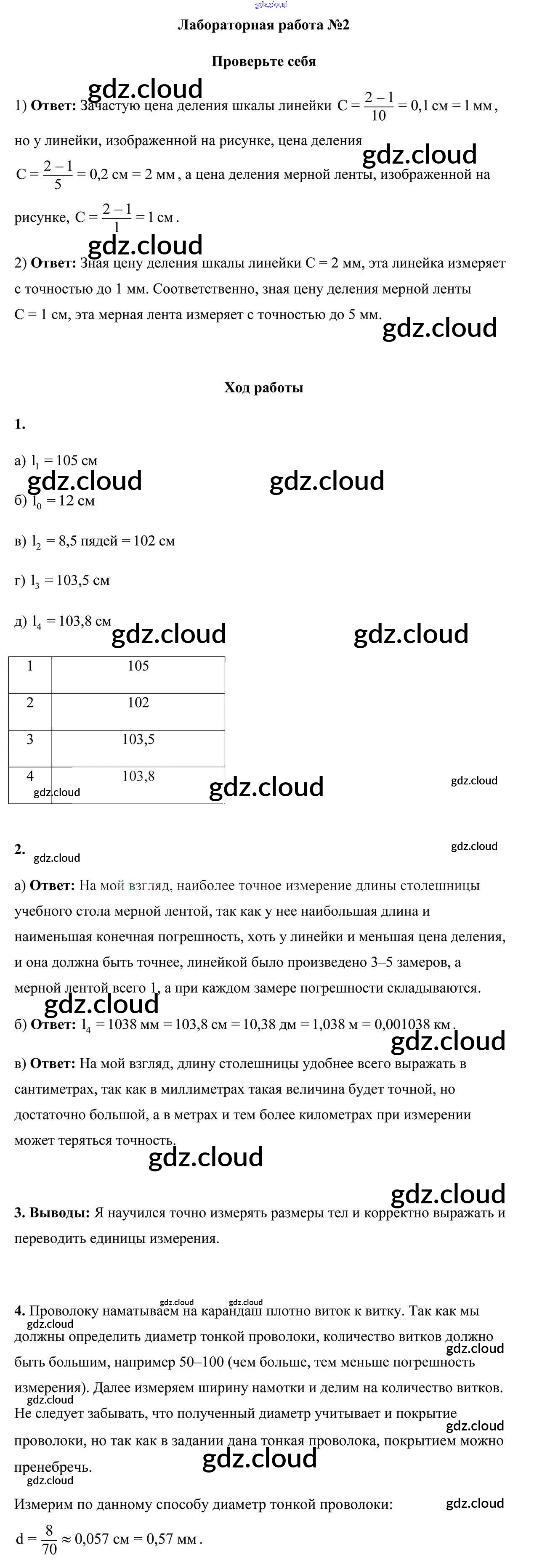 Ответы к лабораторным работам по Физике 7 класс Лабораторные работы Исаченкова Аверсэв