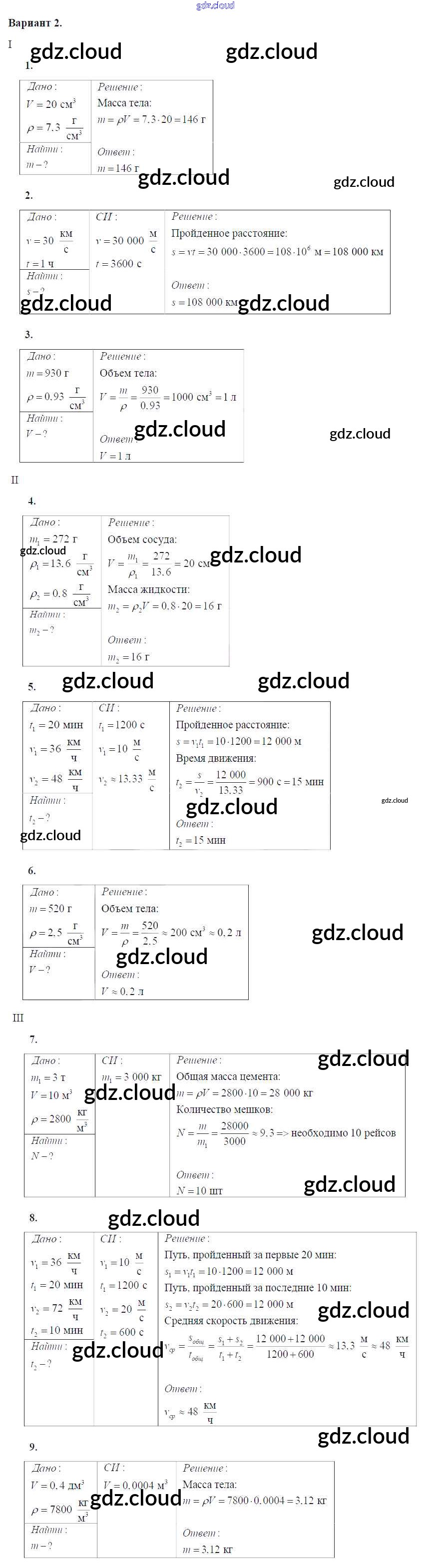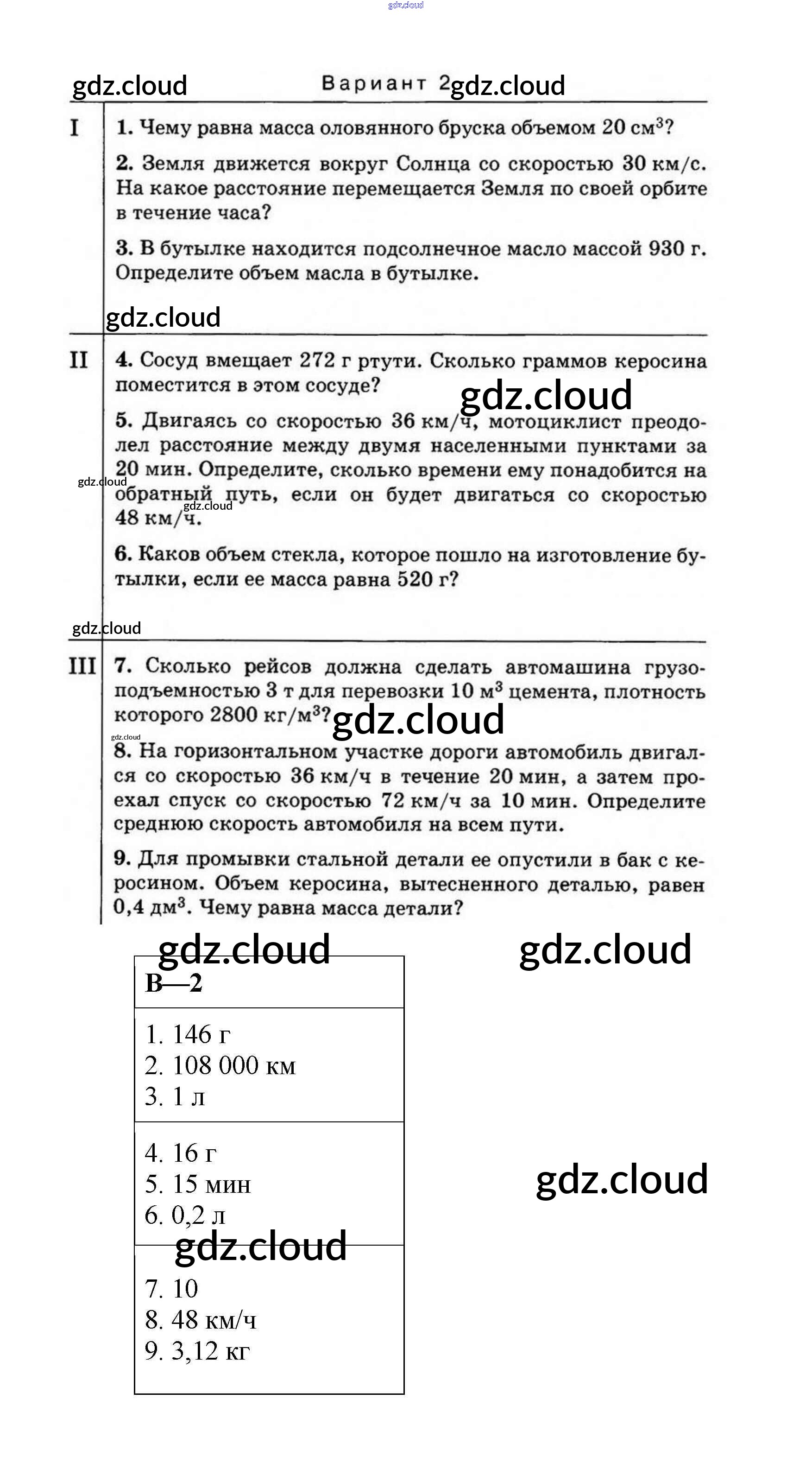 КР №-1. Механическое движение. Плотность вещества Ответы к контрольным работам по Физике 7 класс Дидактические материалы Марон Вертикаль Дрофа