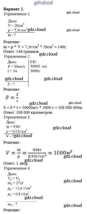 Ответ на задание Вариант №2 Дидактические материалы Физика за 7 (седьмой) класс Марон Вертикаль 2019