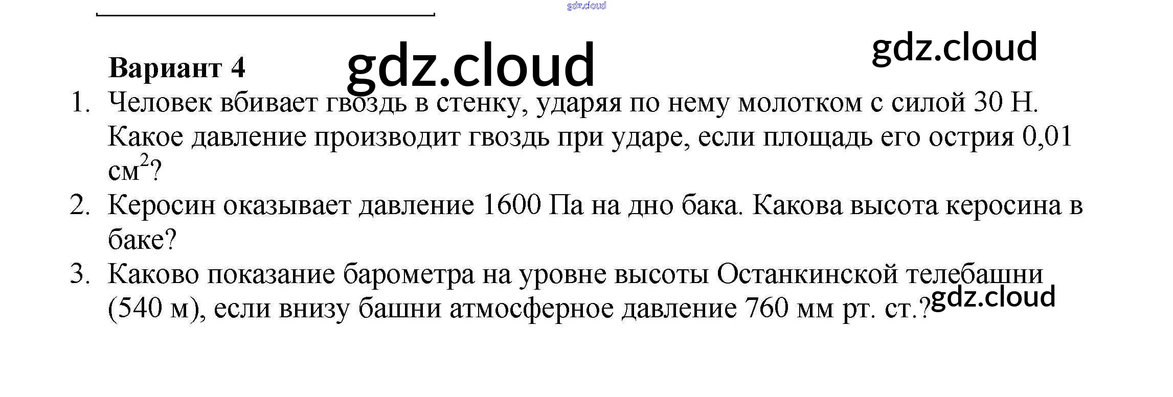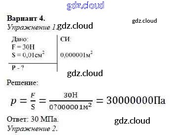 Ответ на задание Вариант №4 Дидактические материалы Физика за 7 (седьмой) класс Марон Вертикаль 2019
