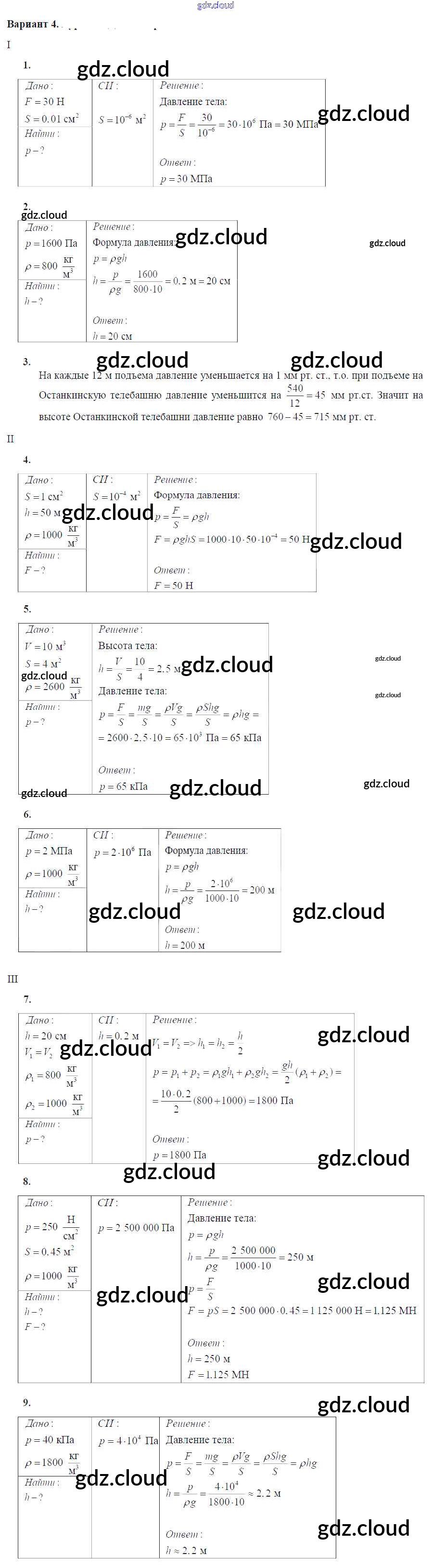 КР №-2. Давление твердых тел, жидкостей и газов Ответы к контрольным работам по Физике 7 класс Дидактические материалы Марон Вертикаль Дрофа