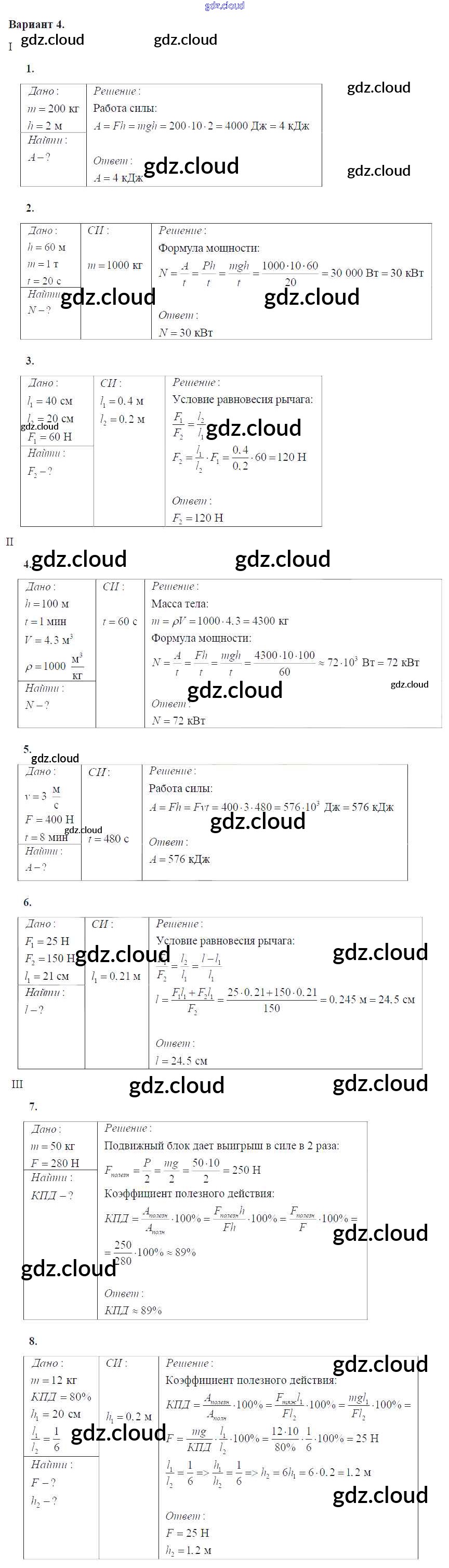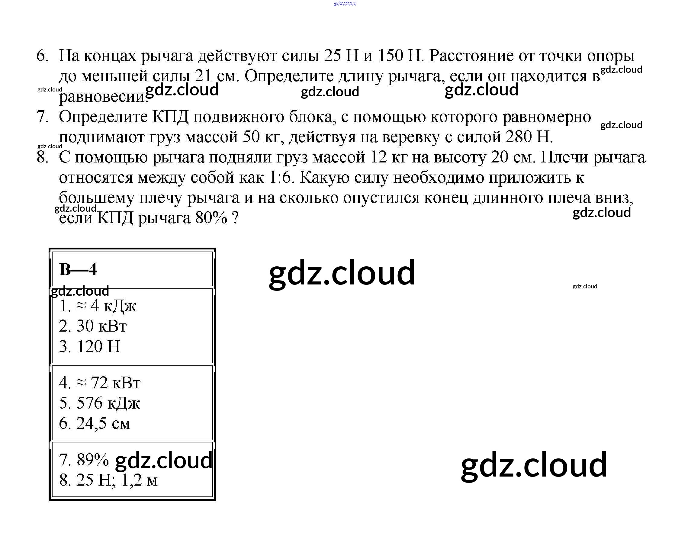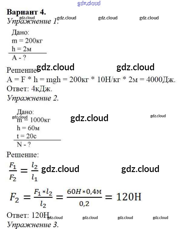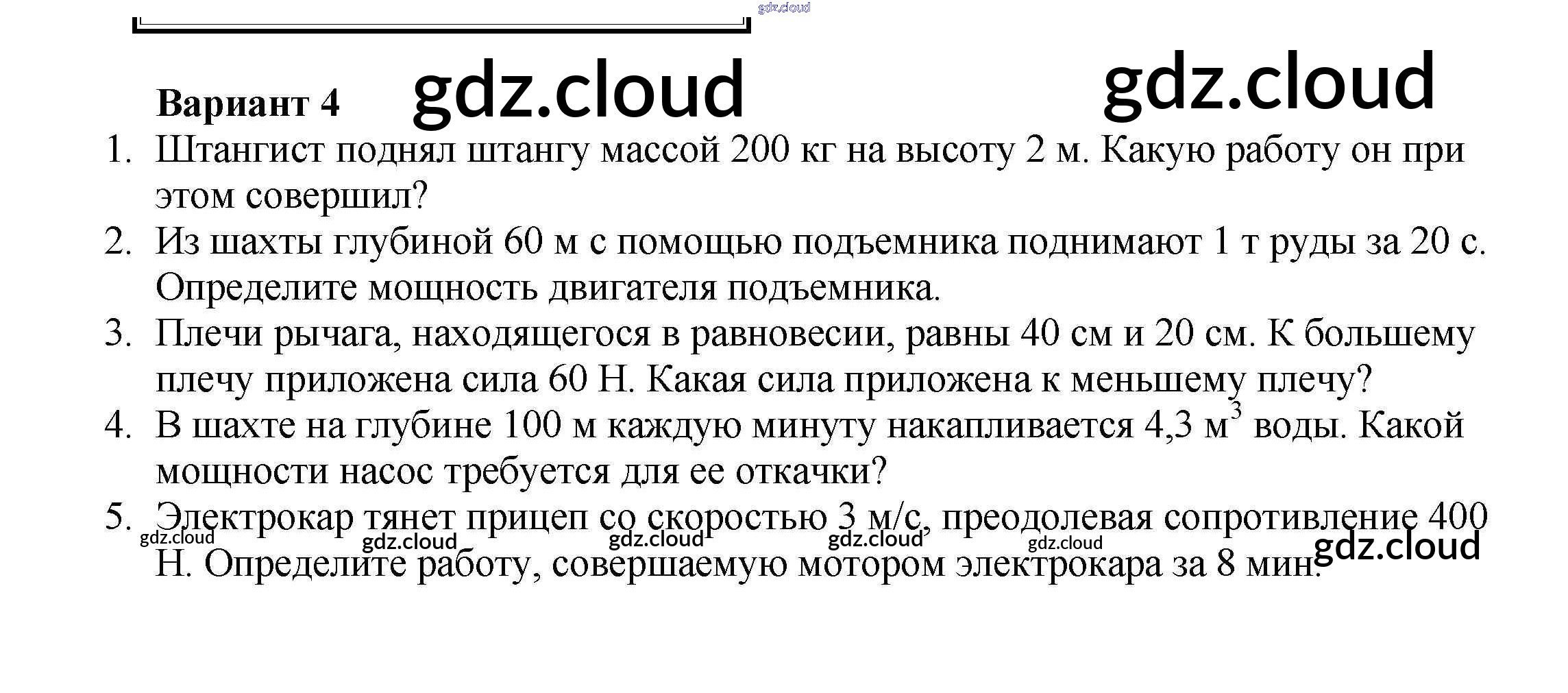 КР №-4. Механическая работа и мощность. Простые механизмы Ответы к контрольным работам по Физике 7 класс Дидактические материалы Марон Вертикаль Дрофа