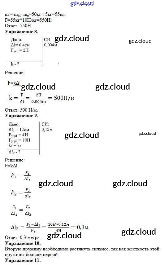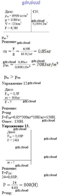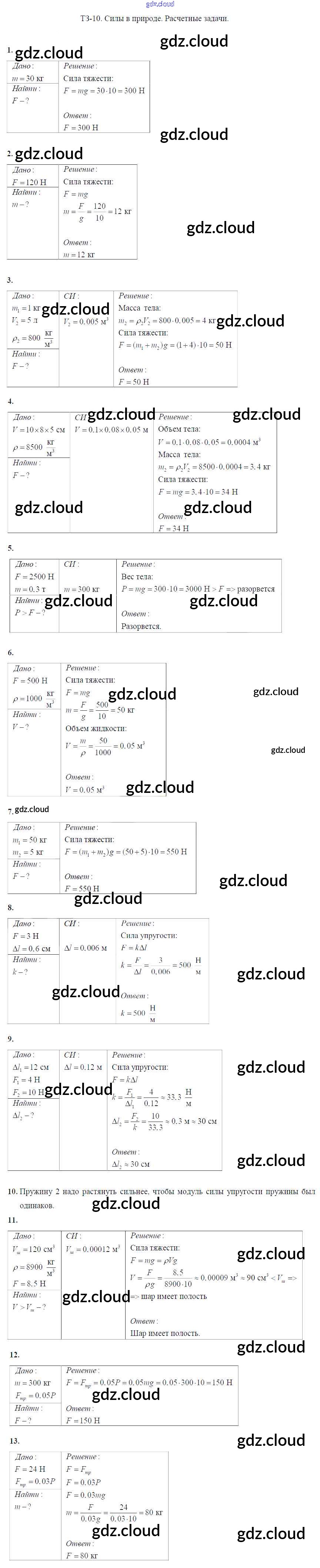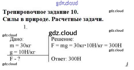 Ответ на задание Задание №10. Силы в природе. Расчетные задачи Дидактические материалы Физика за 7 (седьмой) класс Марон Вертикаль 2019