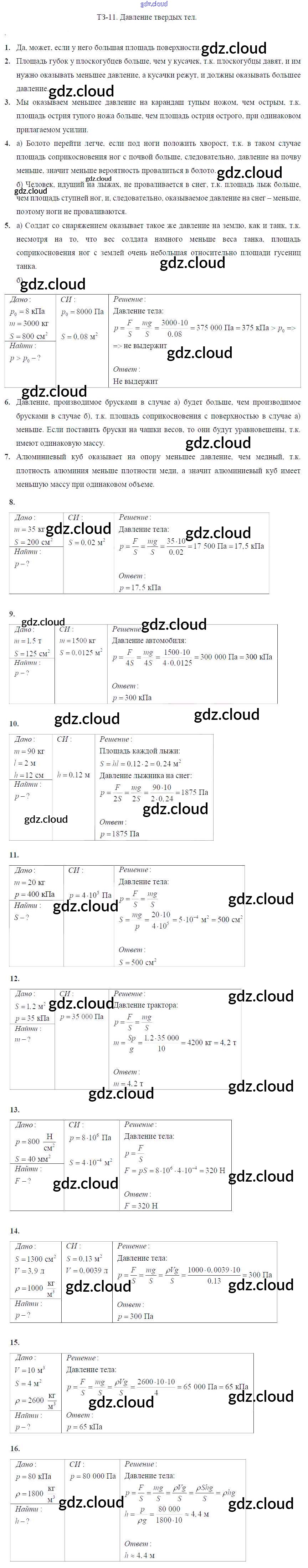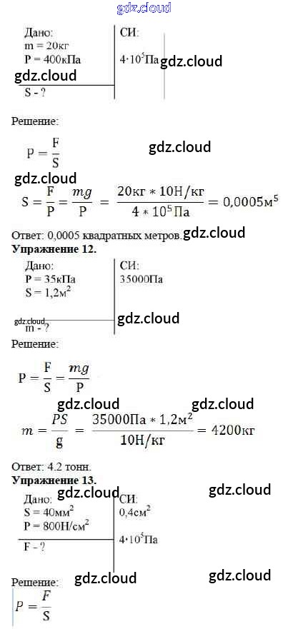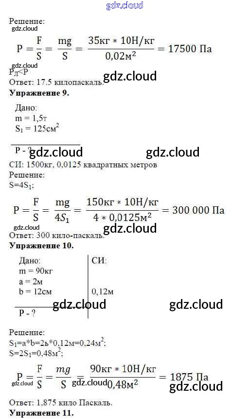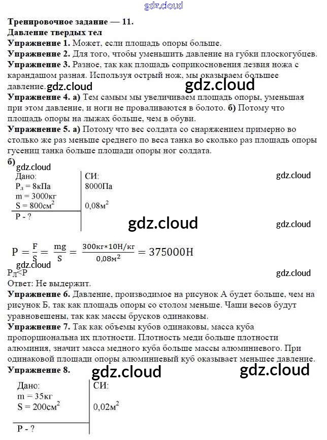 Ответ на задание Задание №11. Давление твердых тел Дидактические материалы Физика за 7 (седьмой) класс Марон Вертикаль 2019