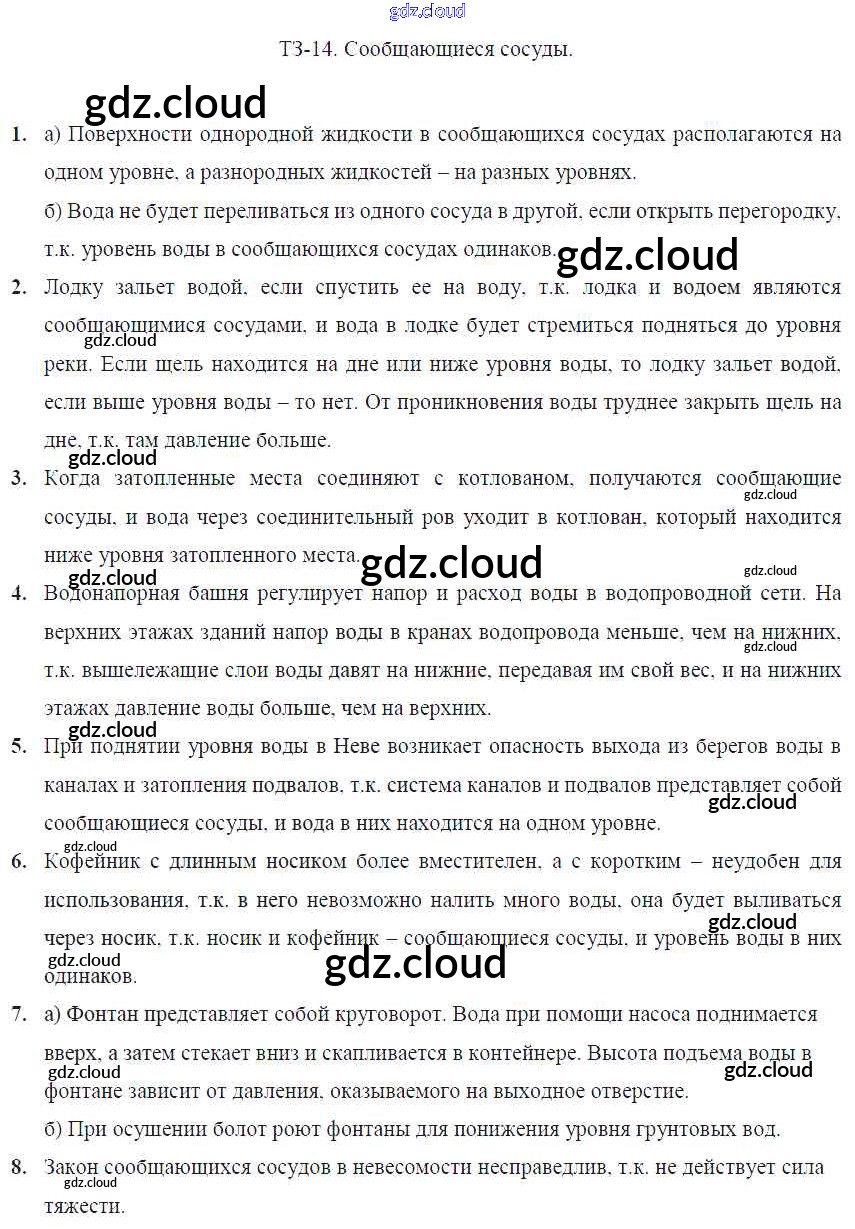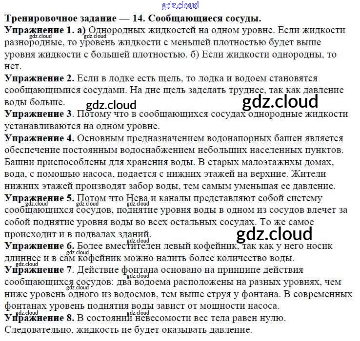 Ответ на задание Задание №14. Сообщающиеся сосуды Дидактические материалы Физика за 7 (седьмой) класс Марон Вертикаль 2019