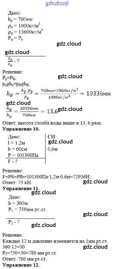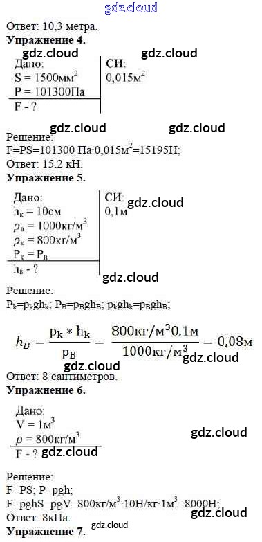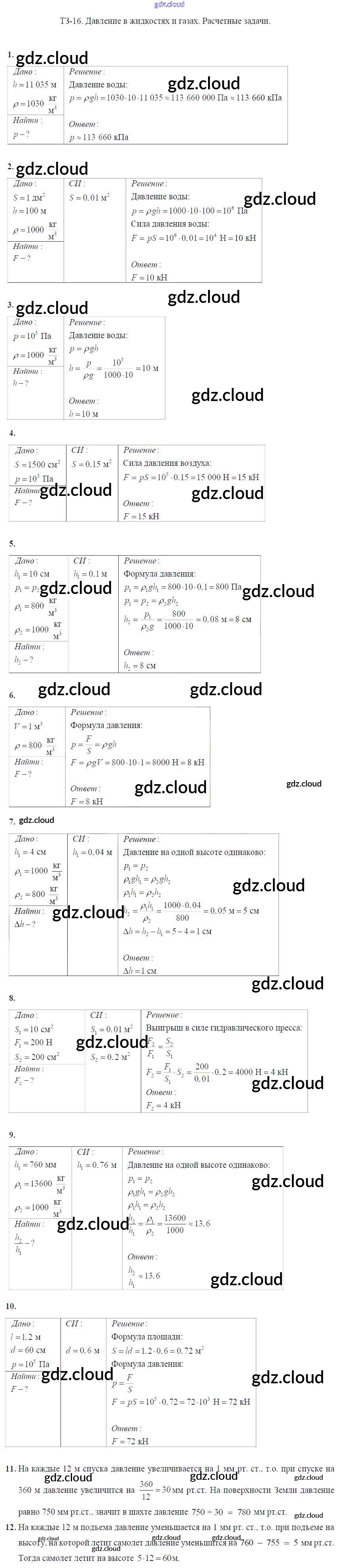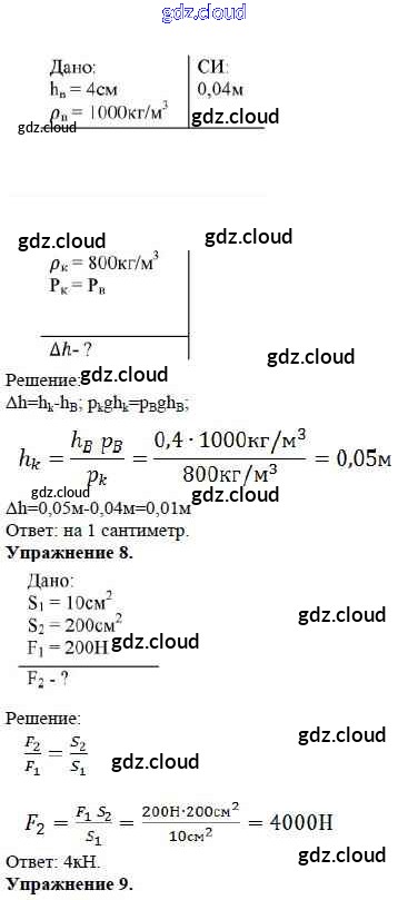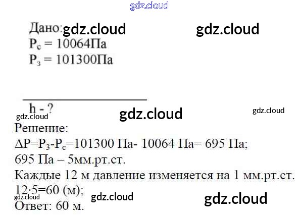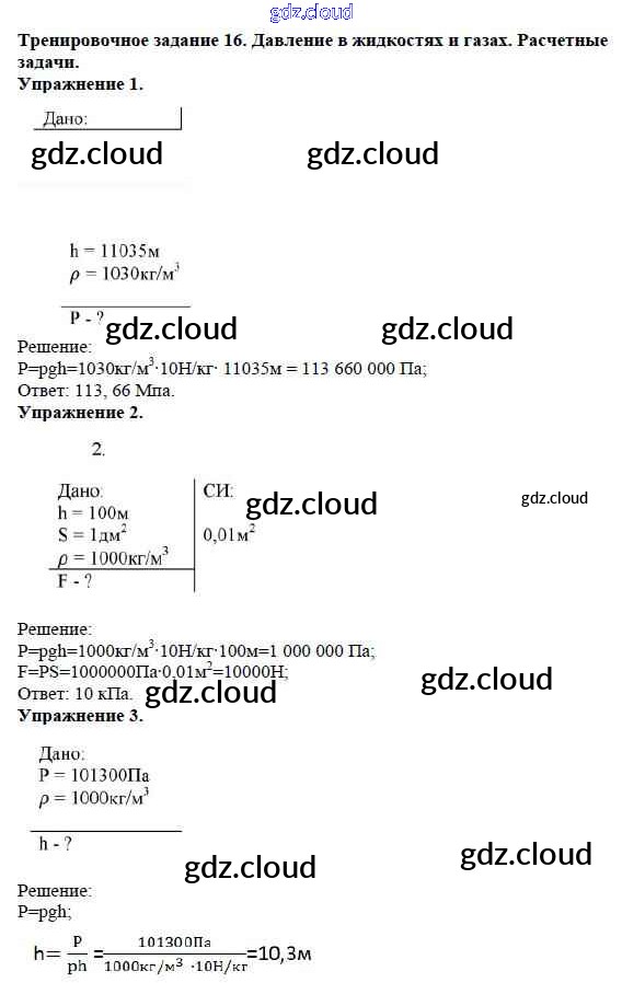 Ответ на задание Задание №16. Давление в жидкостях и газах. Расчетные задачи Дидактические материалы Физика за 7 (седьмой) класс Марон Вертикаль 2019