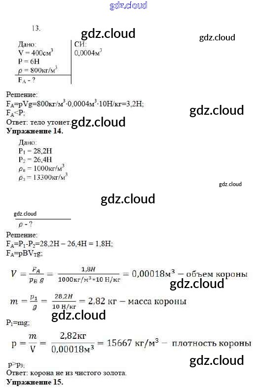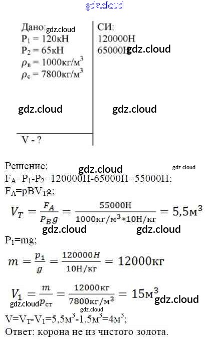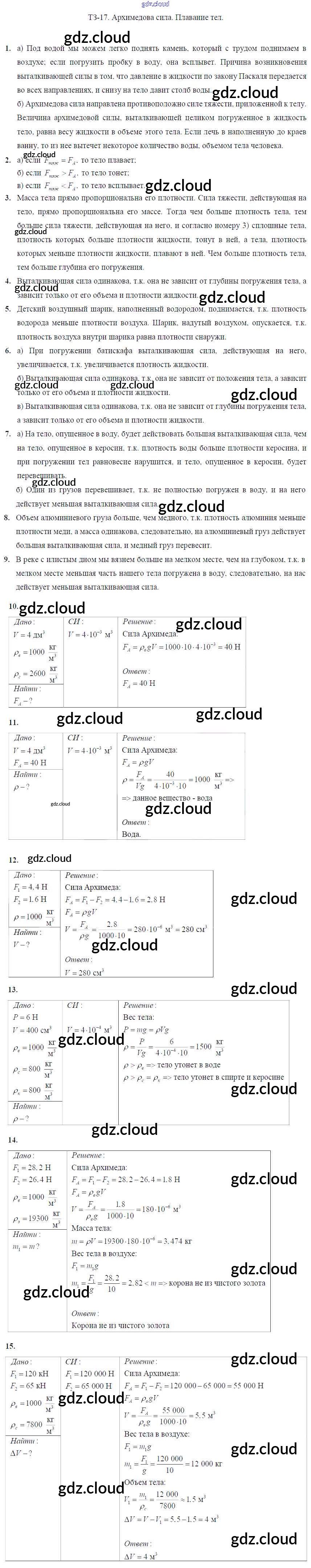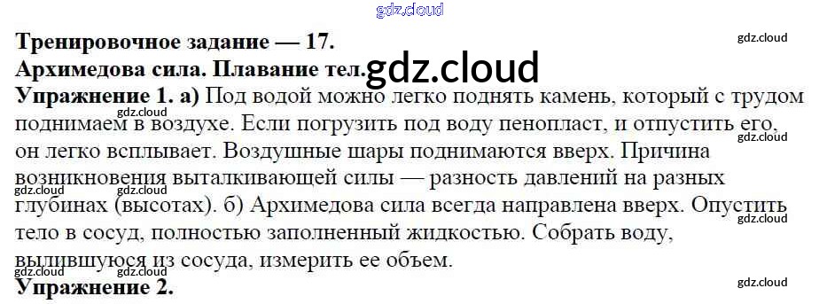 Ответ на задание Задание №17. Архимедова сила. Плавание тел Дидактические материалы Физика за 7 (седьмой) класс Марон Вертикаль 2019
