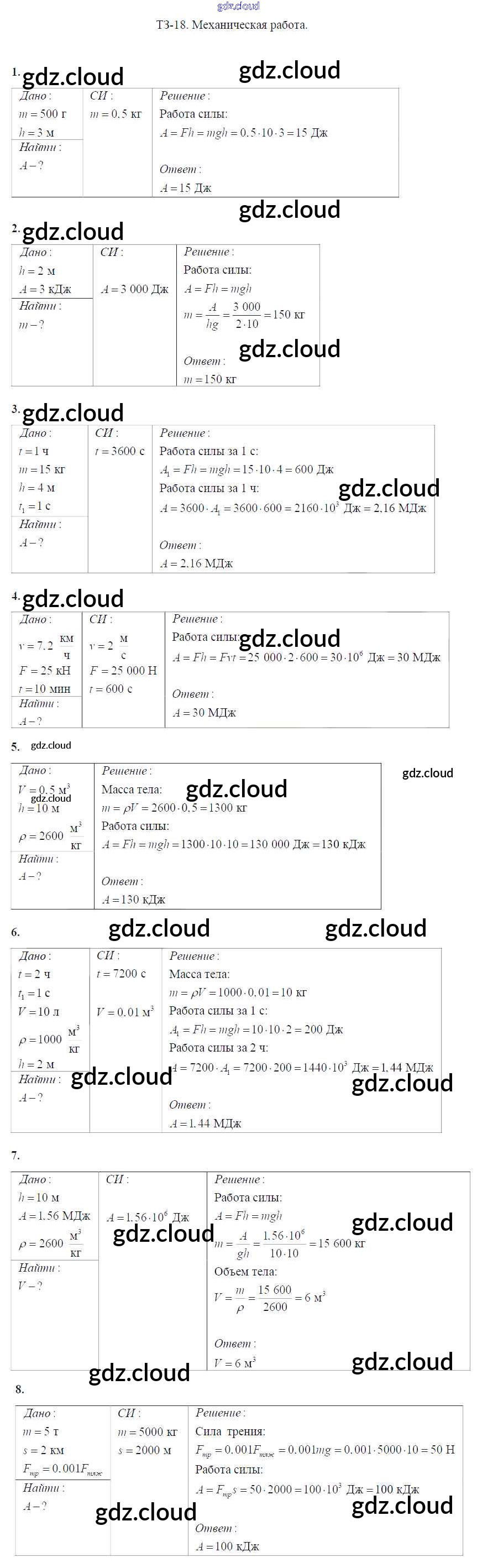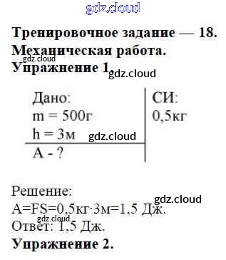 Ответ на задание Задание №18. Механическая работа Дидактические материалы Физика за 7 (седьмой) класс Марон Вертикаль 2019