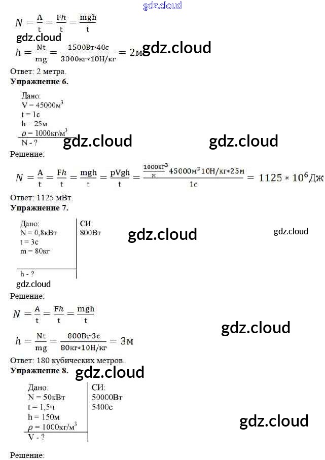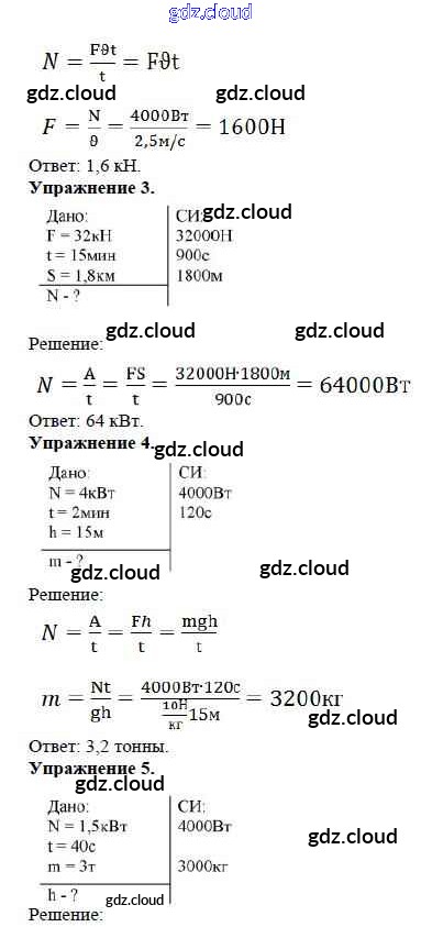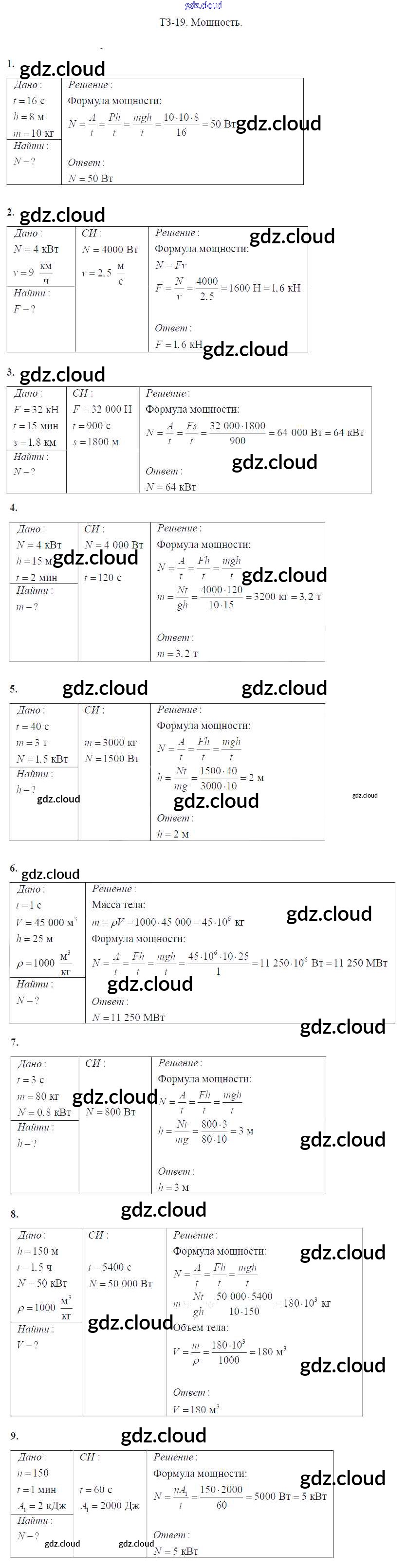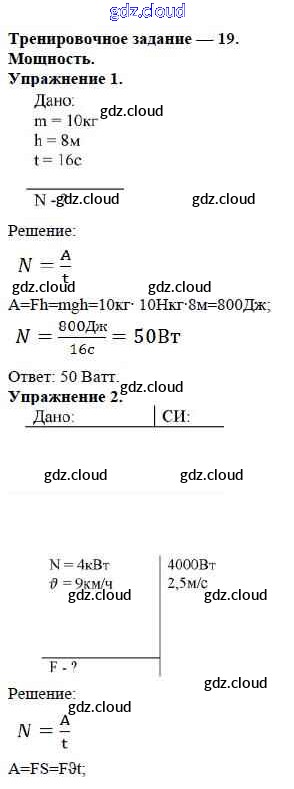 Ответ на задание Задание №19. Мощность Дидактические материалы Физика за 7 (седьмой) класс Марон Вертикаль 2019