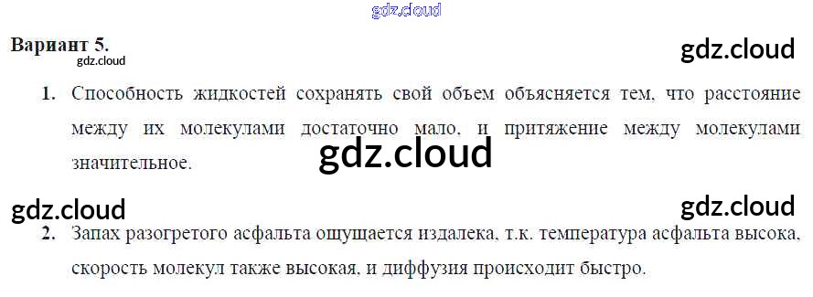 Ответ на задание Вариант №5 Дидактические материалы Физика за 7 (седьмой) класс Марон Вертикаль 2019