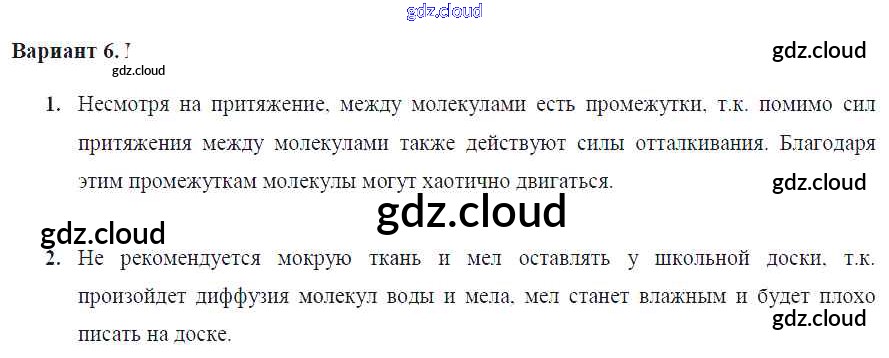 Ответ на задание Вариант №6 Дидактические материалы Физика за 7 (седьмой) класс Марон Вертикаль 2019