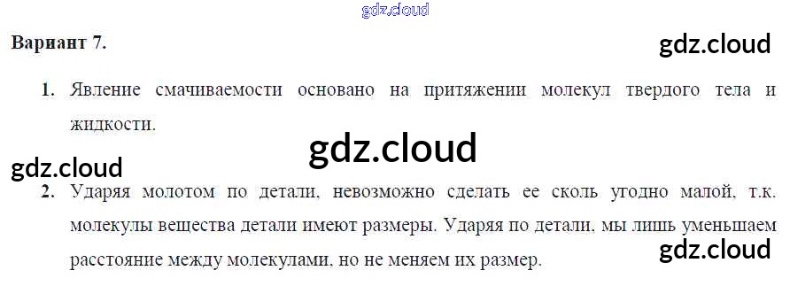 Ответ на задание Вариант №7 Дидактические материалы Физика за 7 (седьмой) класс Марон Вертикаль 2019