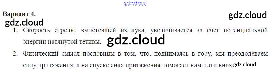 Ответ на задание Вариант №4 Дидактические материалы Физика за 7 (седьмой) класс Марон Вертикаль 2019