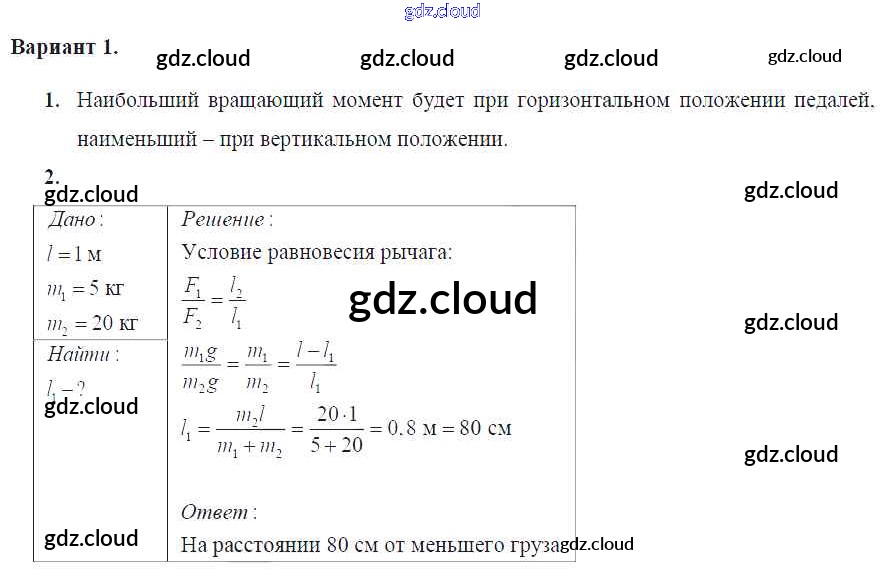 Ответ на задание Вариант №1 Дидактические материалы Физика за 7 (седьмой) класс Марон Вертикаль 2019