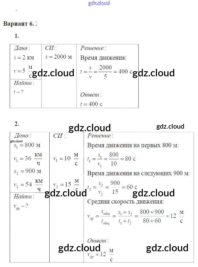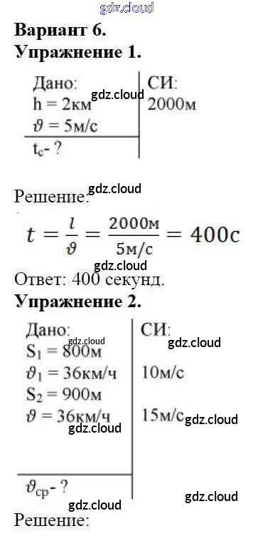Ответ на задание Вариант №6 Дидактические материалы Физика за 7 (седьмой) класс Марон Вертикаль 2019