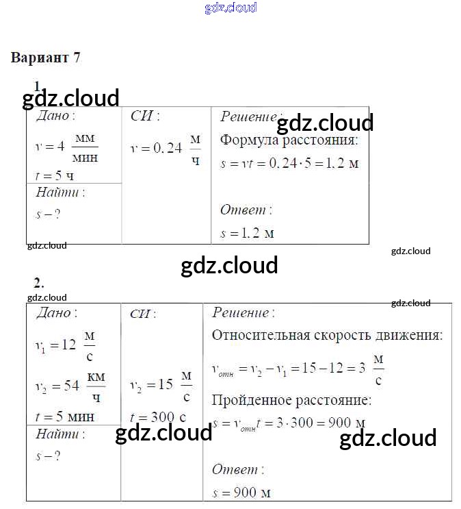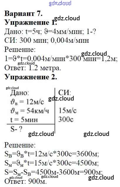 Ответ на задание Вариант №7 Дидактические материалы Физика за 7 (седьмой) класс Марон Вертикаль 2019