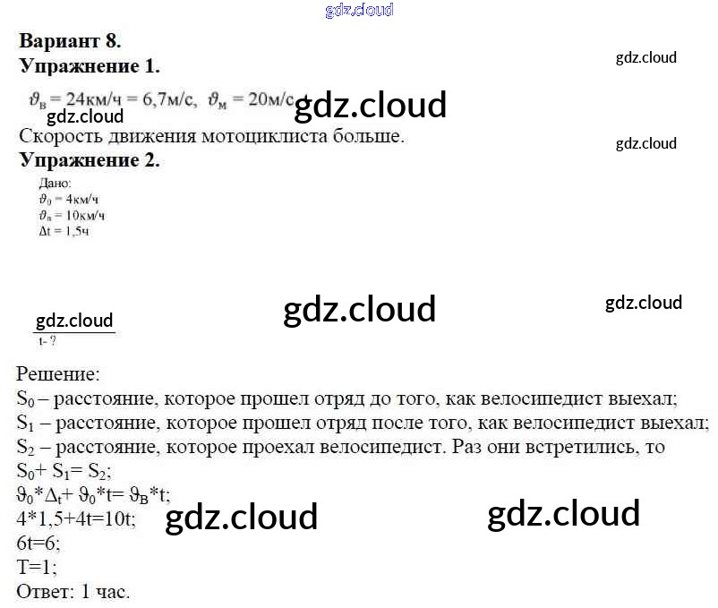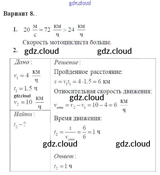 Ответ на задание Вариант №8 Дидактические материалы Физика за 7 (седьмой) класс Марон Вертикаль 2019