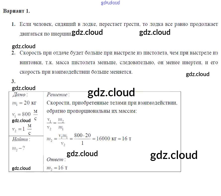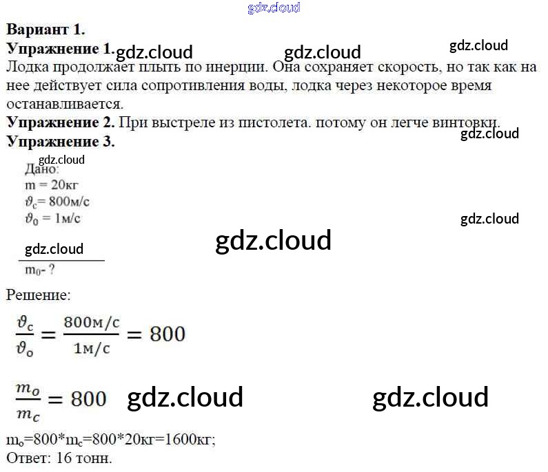 СР №-3. Инерция. Взаимодействие тел. Масса тела Ответы к самостоятельным работам по Физике 7 класс Дидактические материалы Марон Вертикаль Дрофа