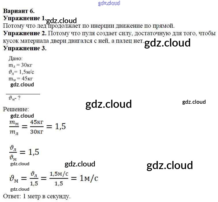 Ответ на задание Вариант №6 Дидактические материалы Физика за 7 (седьмой) класс Марон Вертикаль 2019