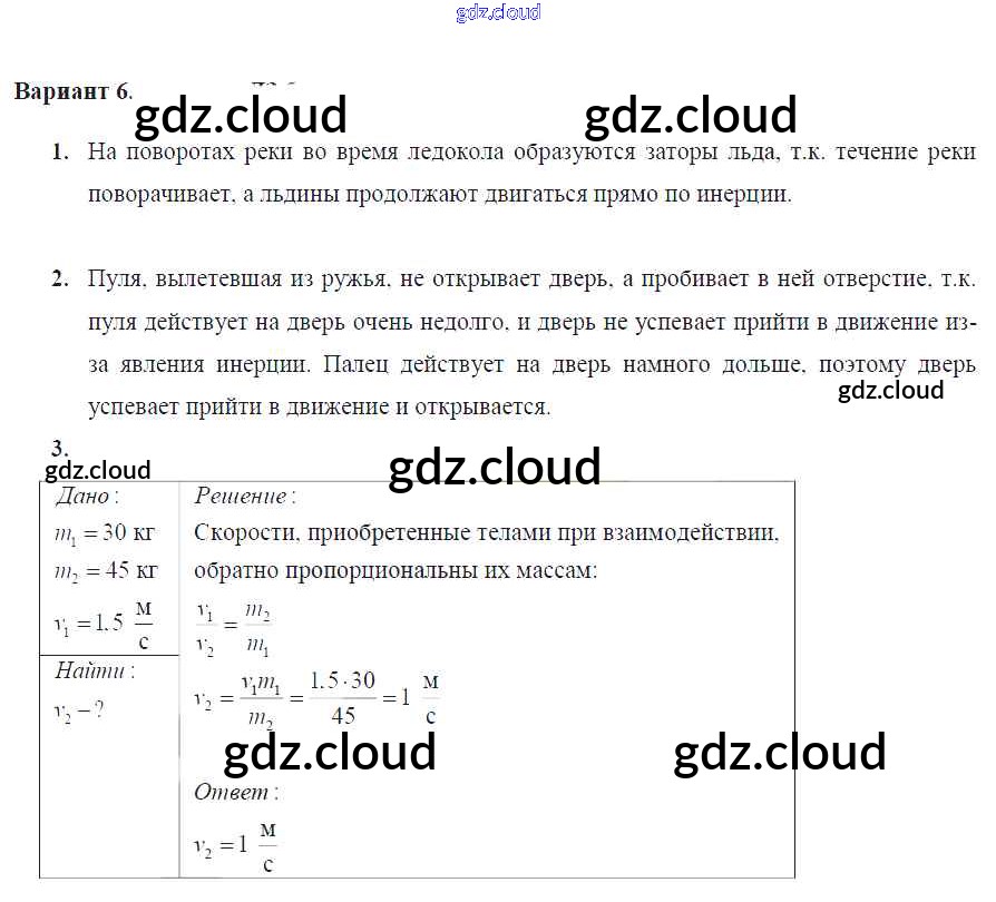 СР №-3. Инерция. Взаимодействие тел. Масса тела Ответы к самостоятельным работам по Физике 7 класс Дидактические материалы Марон Вертикаль Дрофа