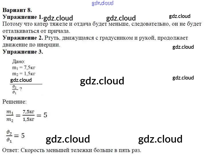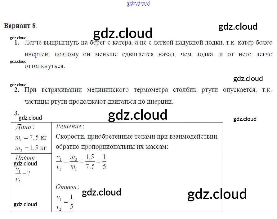 Ответ на задание Вариант №8 Дидактические материалы Физика за 7 (седьмой) класс Марон Вертикаль 2019