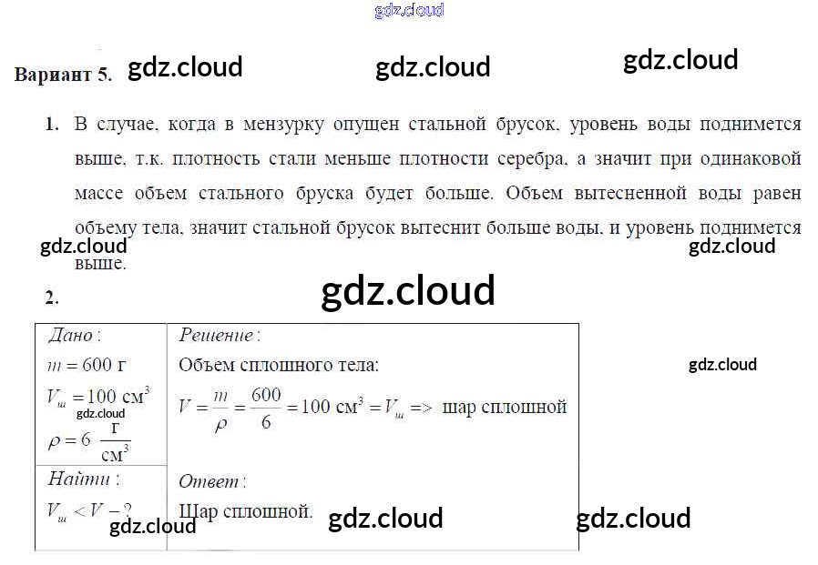 Ответ на задание Вариант №5 Дидактические материалы Физика за 7 (седьмой) класс Марон Вертикаль 2019