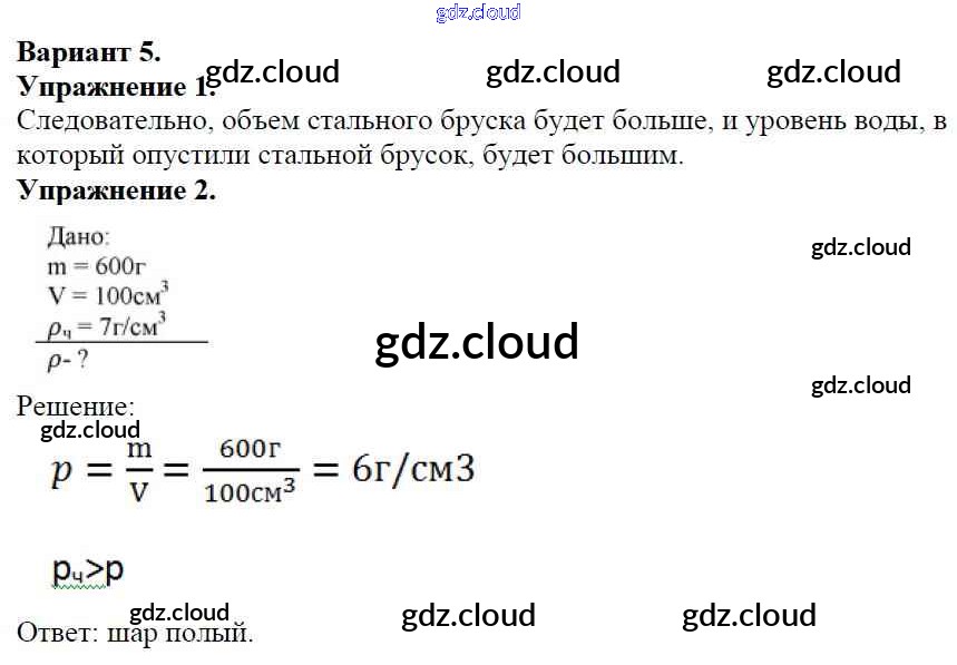 СР №-4. Плотность вещества Ответы к самостоятельным работам по Физике 7 класс Дидактические материалы Марон Вертикаль Дрофа