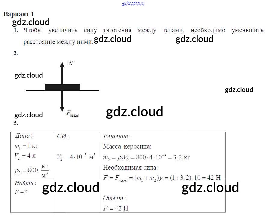 Ответ на задание Вариант №1 Дидактические материалы Физика за 7 (седьмой) класс Марон Вертикаль 2019