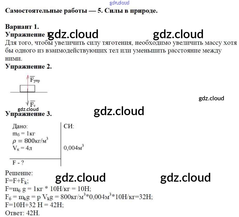 СР №-5. Силы в природе Ответы к самостоятельным работам по Физике 7 класс Дидактические материалы Марон Вертикаль Дрофа