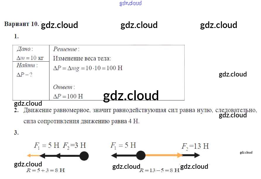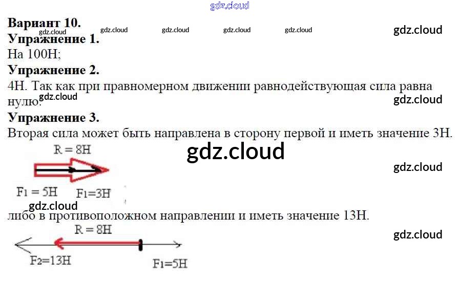 Ответ на задание Вариант №10 Дидактические материалы Физика за 7 (седьмой) класс Марон Вертикаль 2019