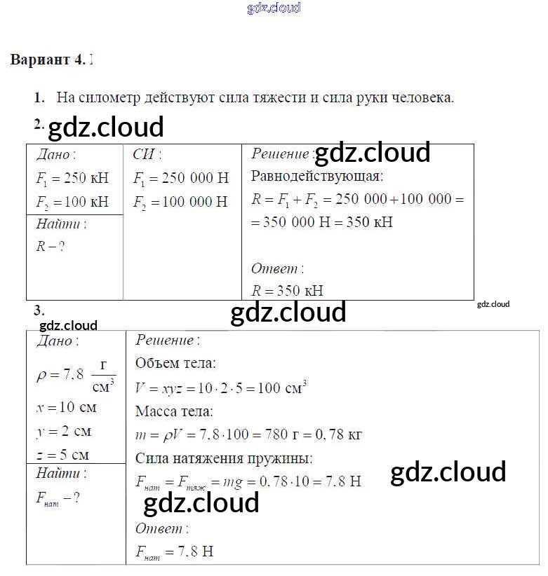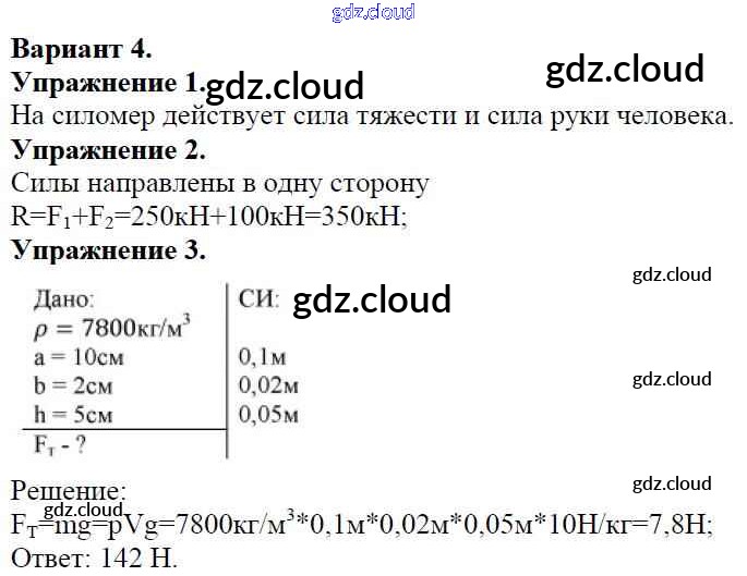 Ответ на задание Вариант №4 Дидактические материалы Физика за 7 (седьмой) класс Марон Вертикаль 2019