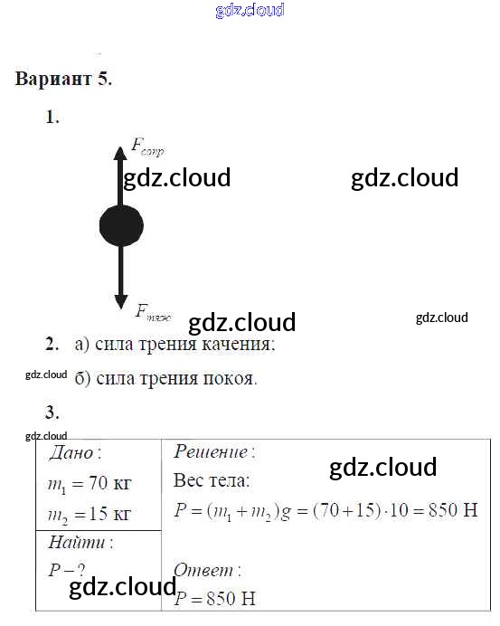 СР №-5. Силы в природе Ответы к самостоятельным работам по Физике 7 класс Дидактические материалы Марон Вертикаль Дрофа